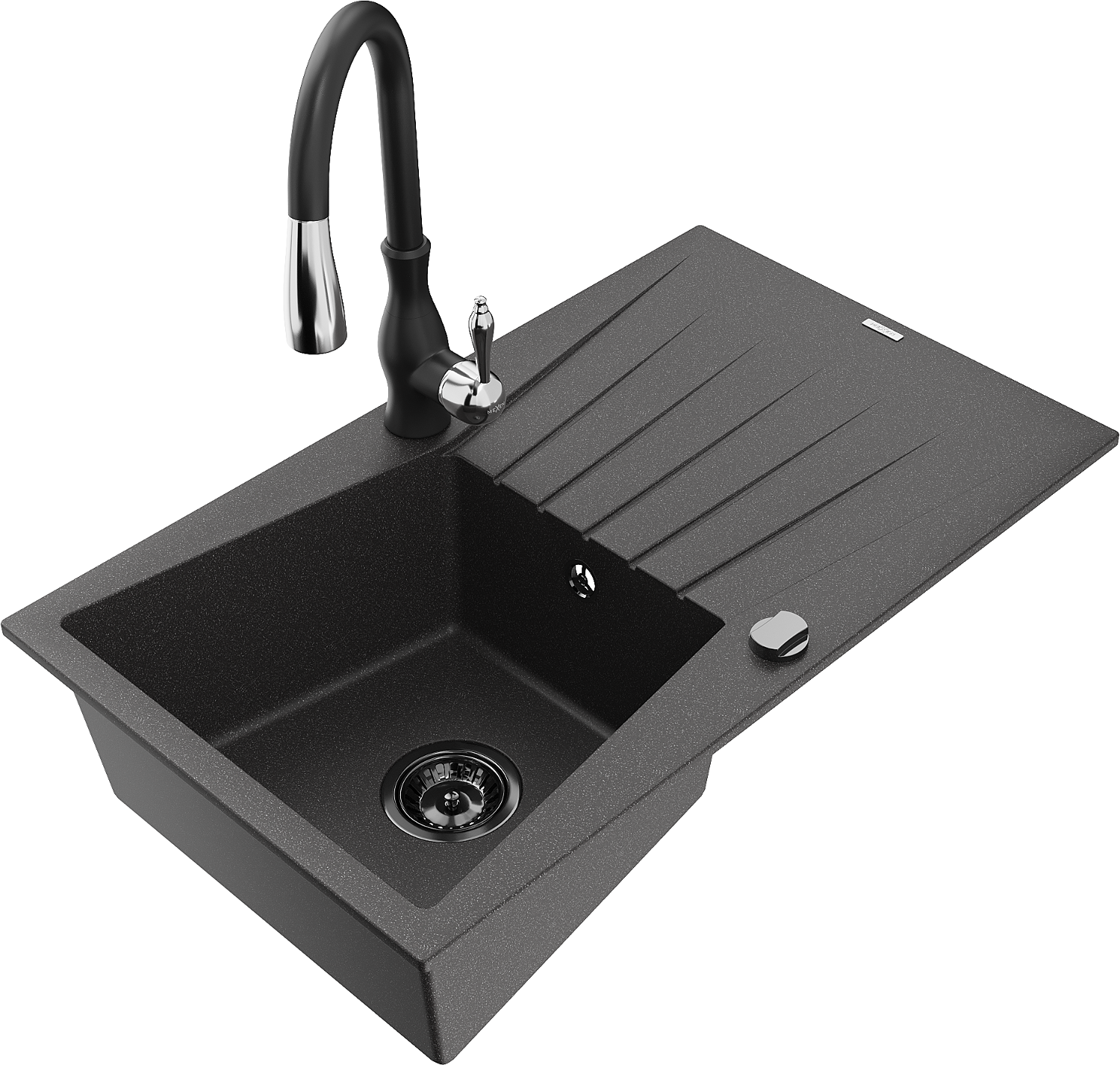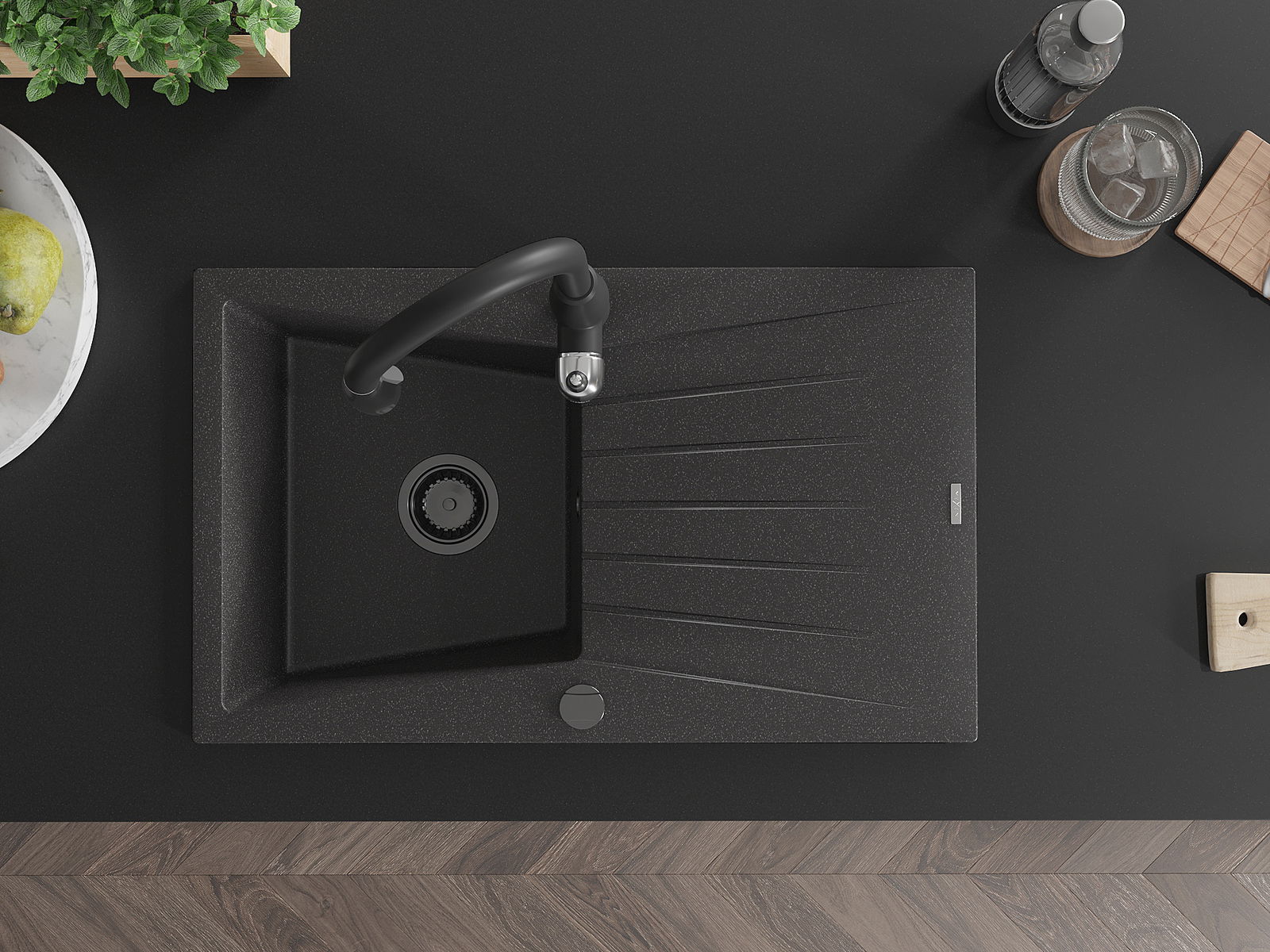 A mosogató kiváló minőségű gránitból készül. Ez egy elegáns és mindenekelőtt minden konyhához praktikus kiegészítés, stílusától függetlenül. A kiváló minőségű és a gránit tartósság biztosítja a sok éves használatát.