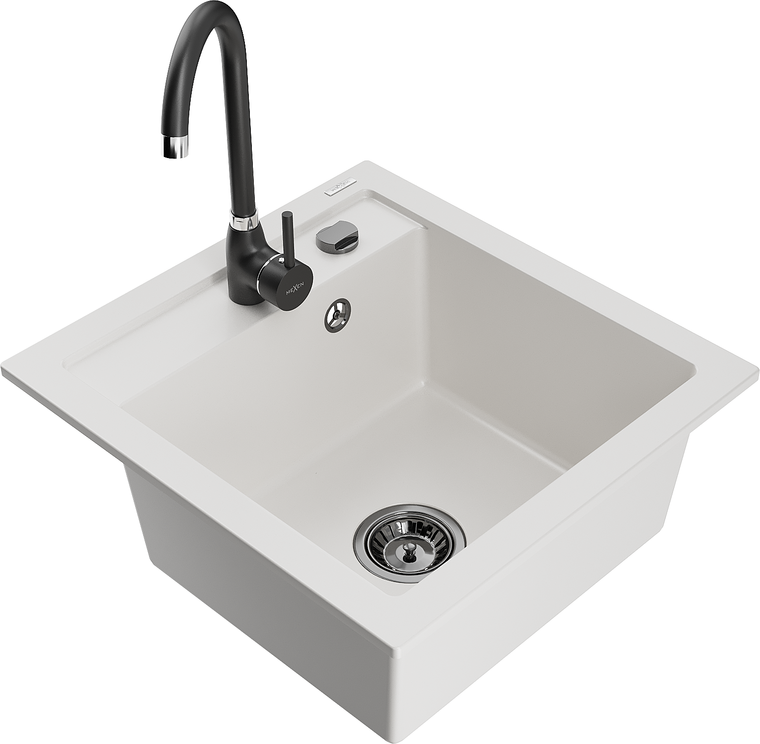 Mexen Vito egymedencés gránit mosogató Telma konyhai csapteleppel, fehér - 6503-20-670200-70
