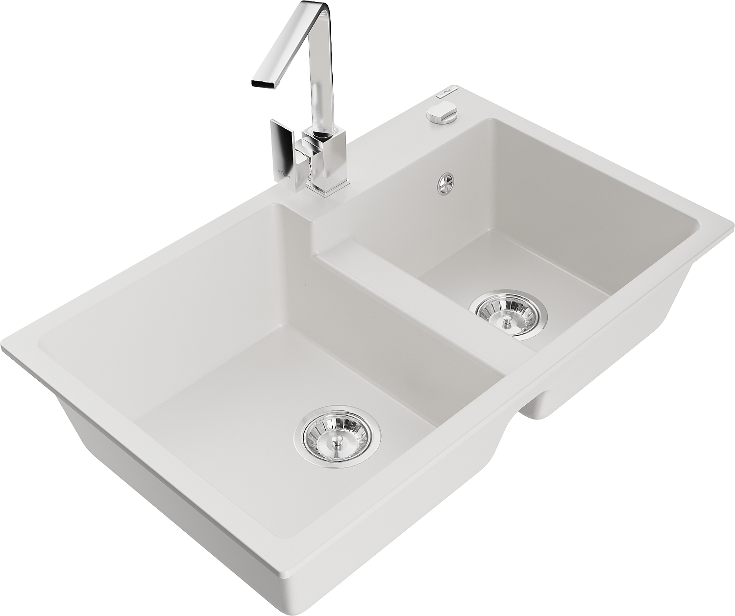 Mexen Tomas gránit mosogató 2-medencés konyhai csappal Rita, fehér - 6516-20-670300-00