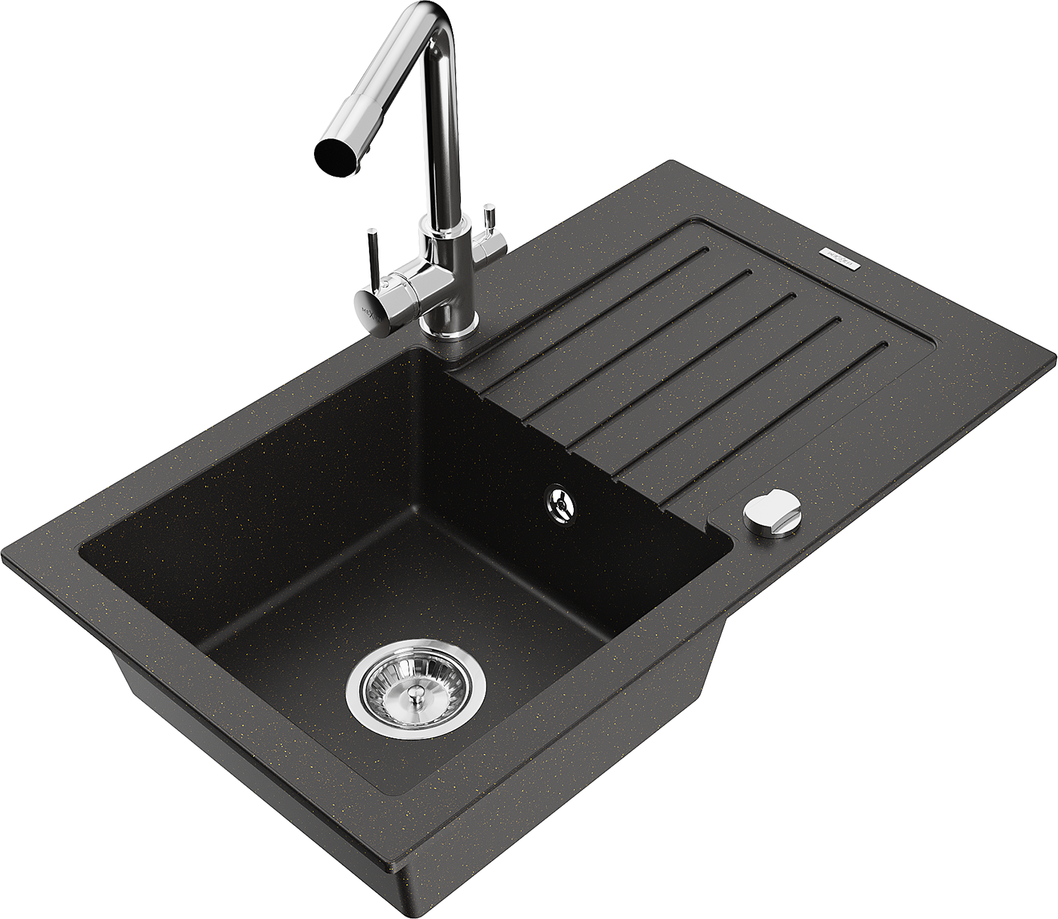 A mosogató magas minőségű gránitból készült. Elegáns, de mindenekelőtt praktikus kiegészítője minden konyhának, függetlenül annak stílusától. A gránit magas minősége és tartóssága hosszú távú használatot biztosít.