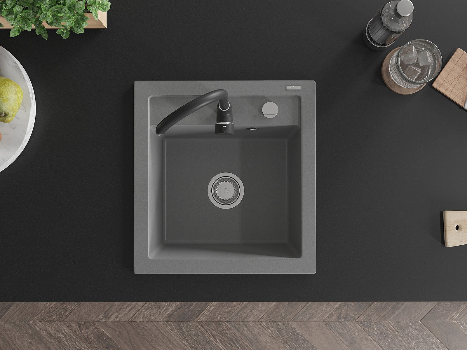 A mosogató kiváló minőségű gránitból készül. Ez egy elegáns és mindenekelőtt minden konyhához praktikus kiegészítés, stílusától függetlenül. A kiváló minőségű és a gránit tartósság biztosítja a sok éves használatát.