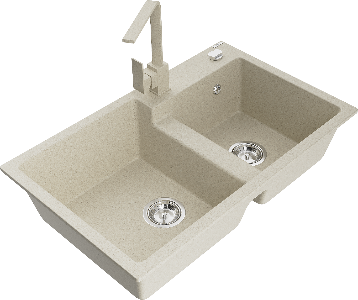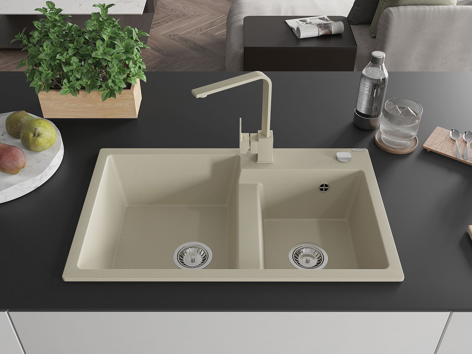 Mexen Tomas gránit mosogató 2-medencés konyhai csapteleppel Rita, bézs - 6516-69-670300-69