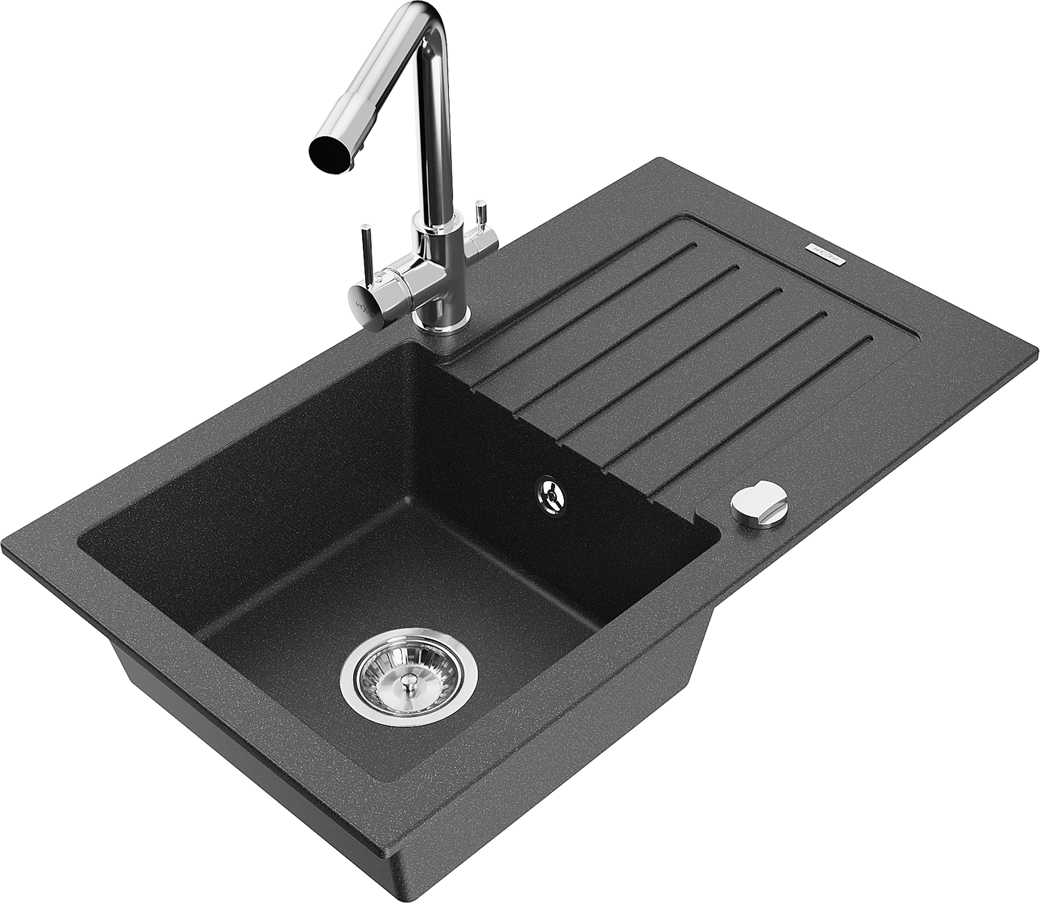 A mosogató magas minőségű gránitból készült. Elegáns, de mindenekelőtt praktikus kiegészítője minden konyhának, függetlenül annak stílusától. A gránit magas minősége és tartóssága hosszú távú használatot biztosít.