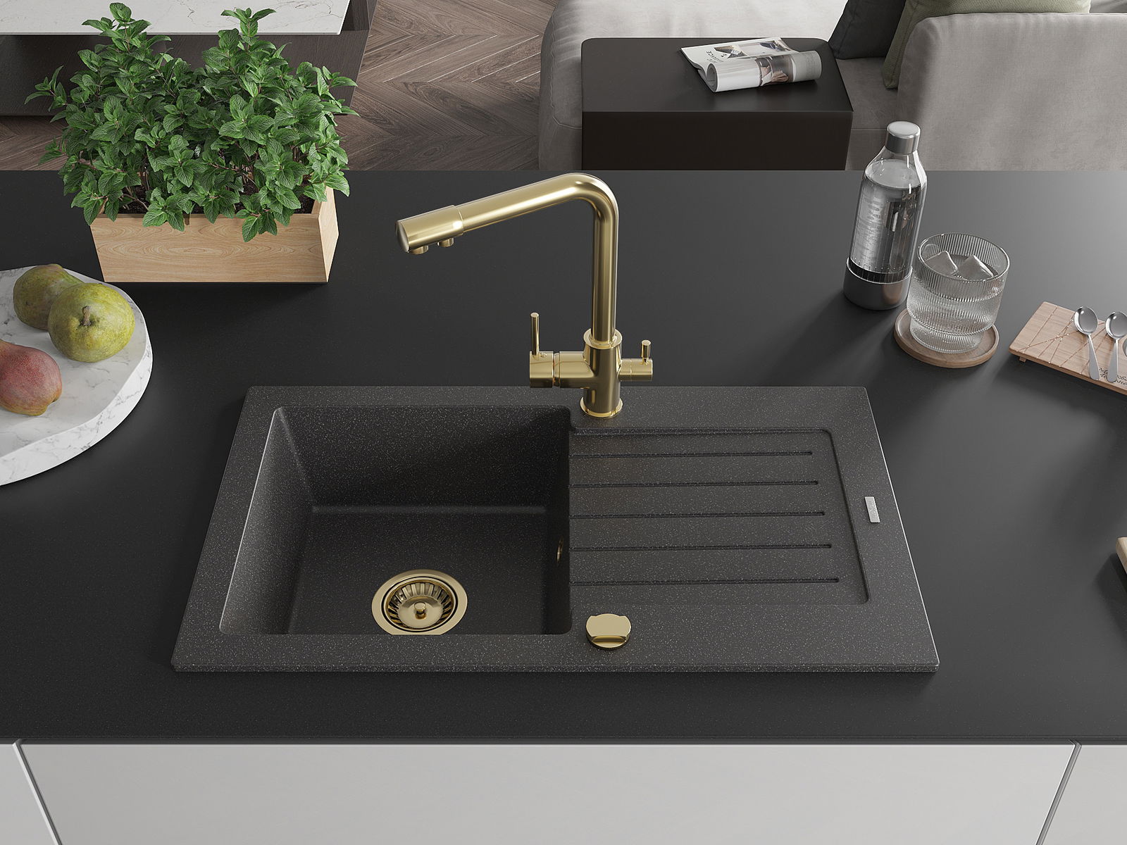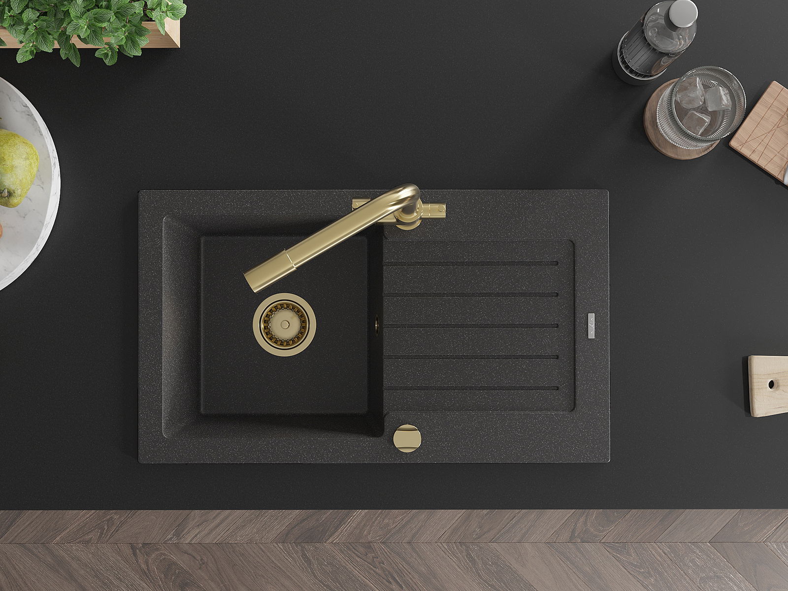 A mosogató magas minőségű gránitból készült. Elegáns, de mindenekelőtt praktikus kiegészítője minden konyhának, függetlenül annak stílusától. A gránit magas minősége és tartóssága hosszú távú használatot biztosít.
