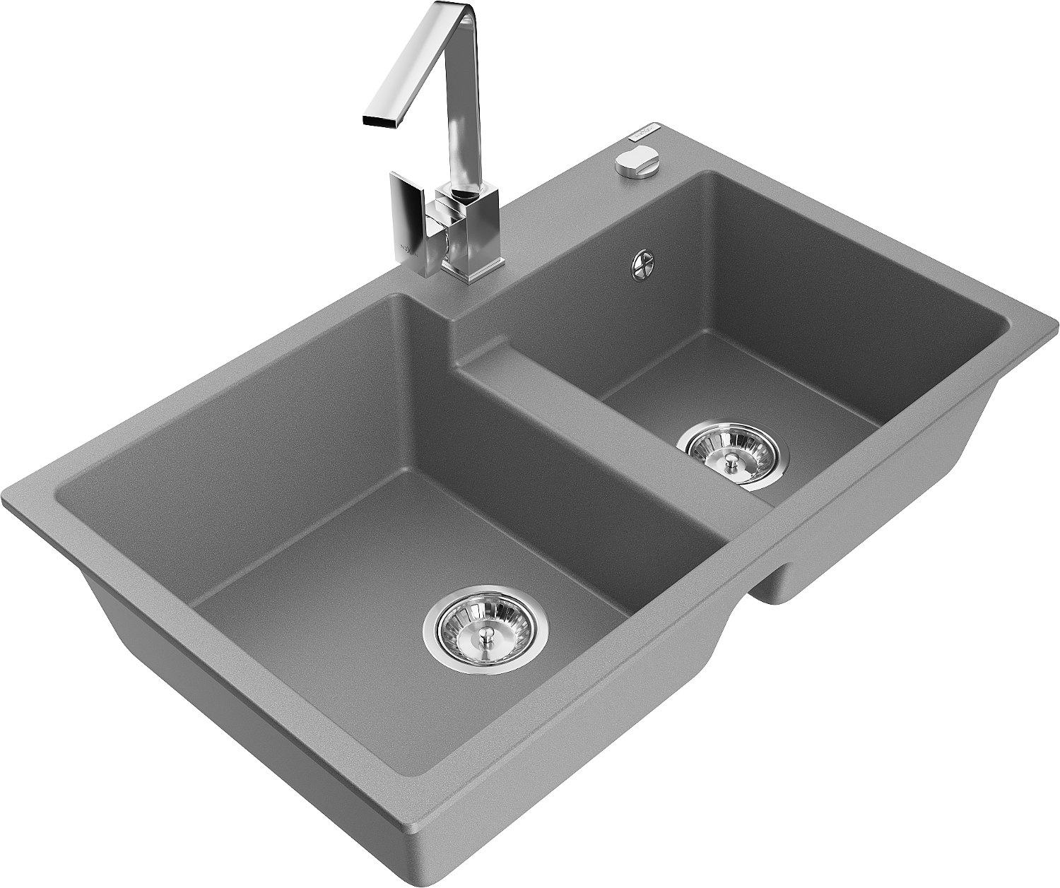 Mexen Tomas gránit kétmedencés mosogató Rita konyhai csapteleppel, szürke - 6516-71-670300-00