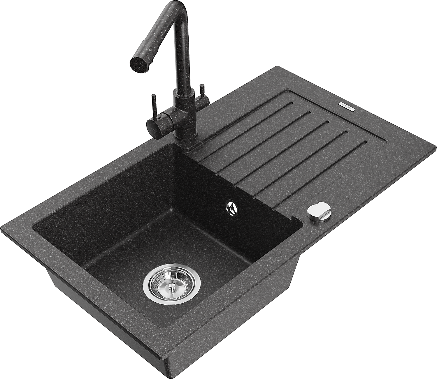 A mosogató magas minőségű gránitból készült. Elegáns, de mindenekelőtt praktikus kiegészítője minden konyhának, függetlenül annak stílusától. A gránit magas minősége és tartóssága hosszú távú használatot biztosít.