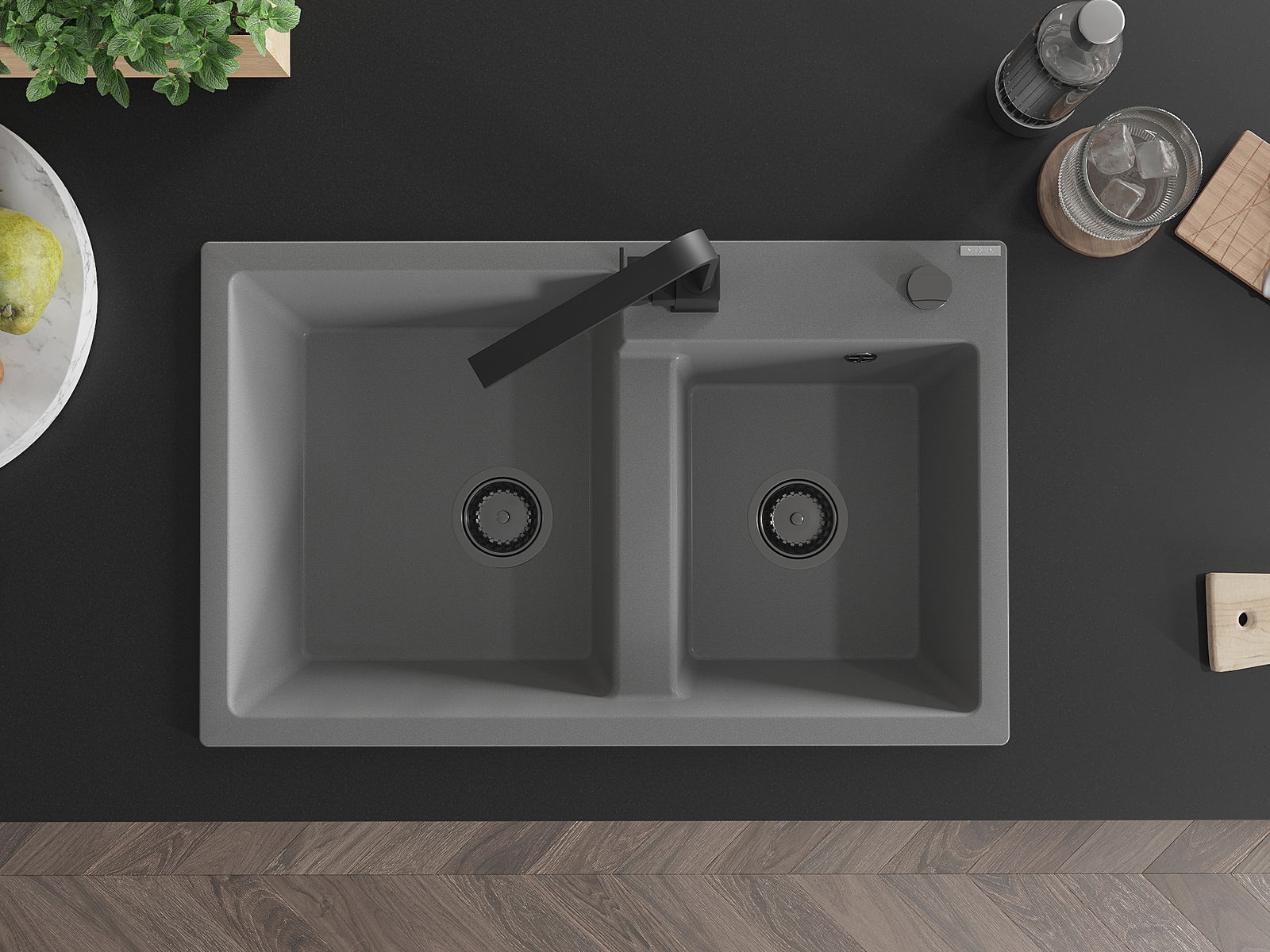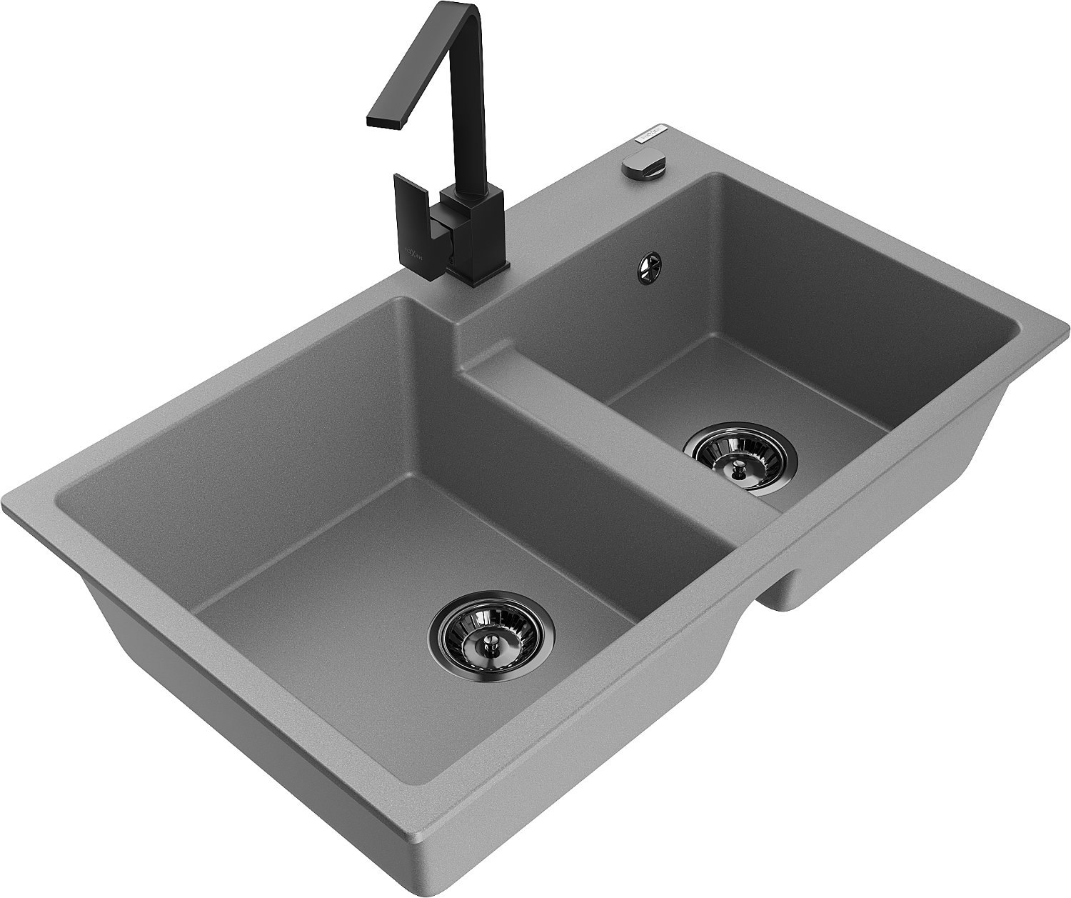 Mexen Tomas gránitmosogató 2-medencés konyhai csapteleppel Rita, szürke - 6516-71-670300-70-B