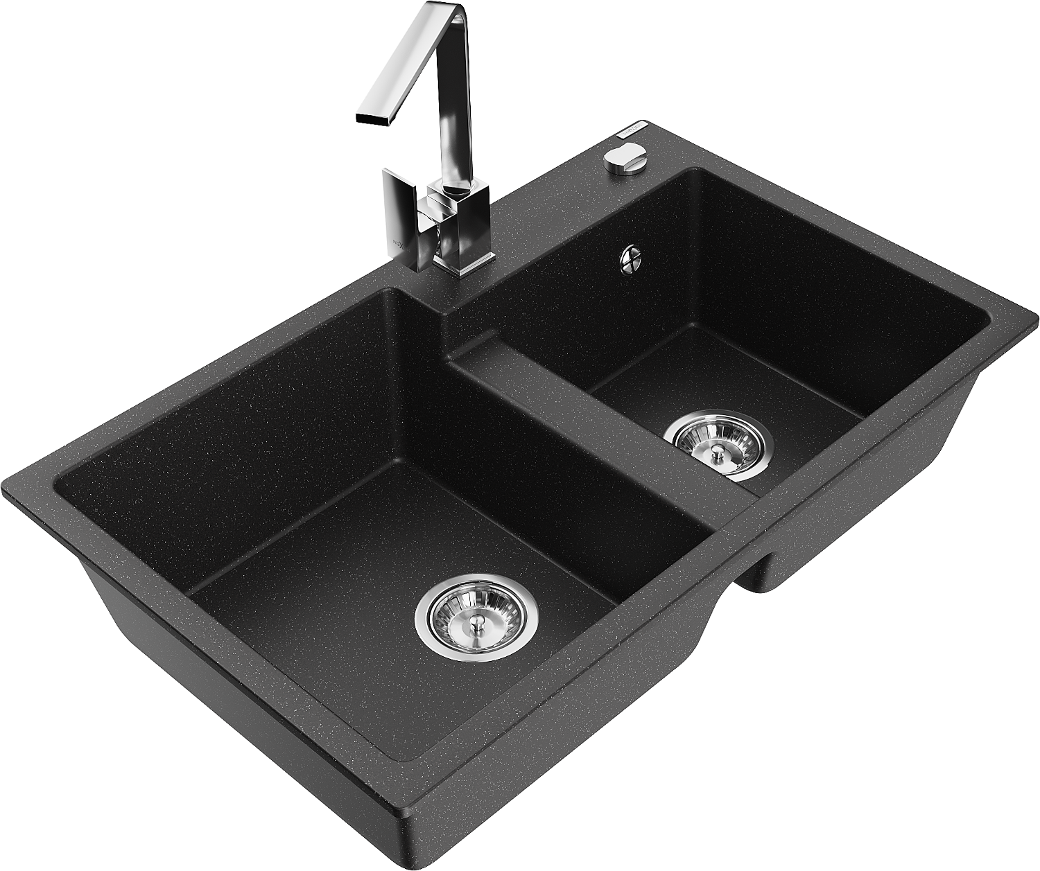 Mexen Tomas gránit kétmedencés mosogató Ritával, fekete/ezüst metál - 6516-73-670300-00