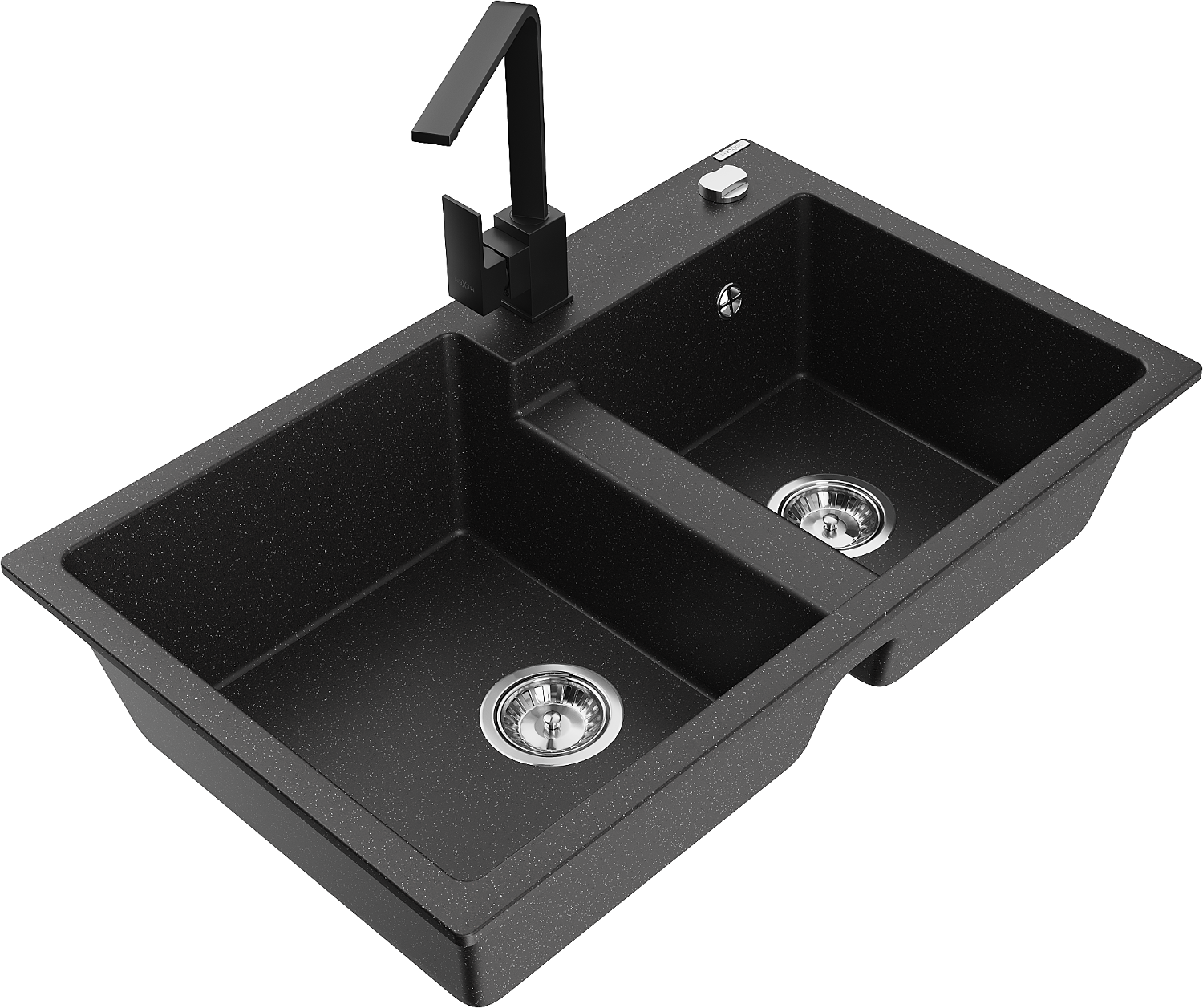 Mexen Tomas gránit 2-medencés mosogató Rita konyhai csapteleppel, fekete/ezüst metál - 6516-73-670300-70