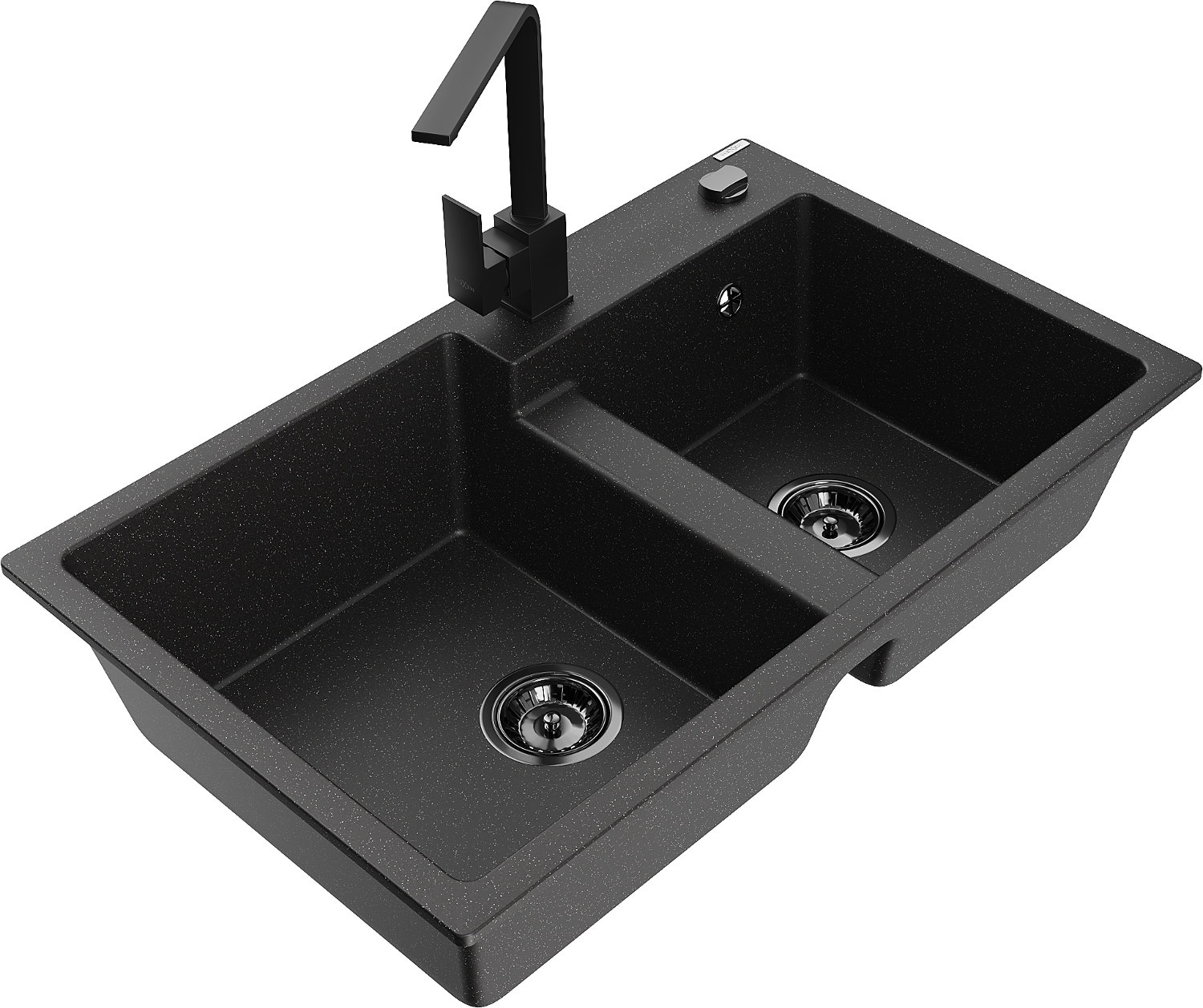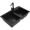Mexen Tomas dupla medencés gránit mosogató Rita konyhai csapteleppel, fekete/ezüst metál - 6516-73-670300-70-B