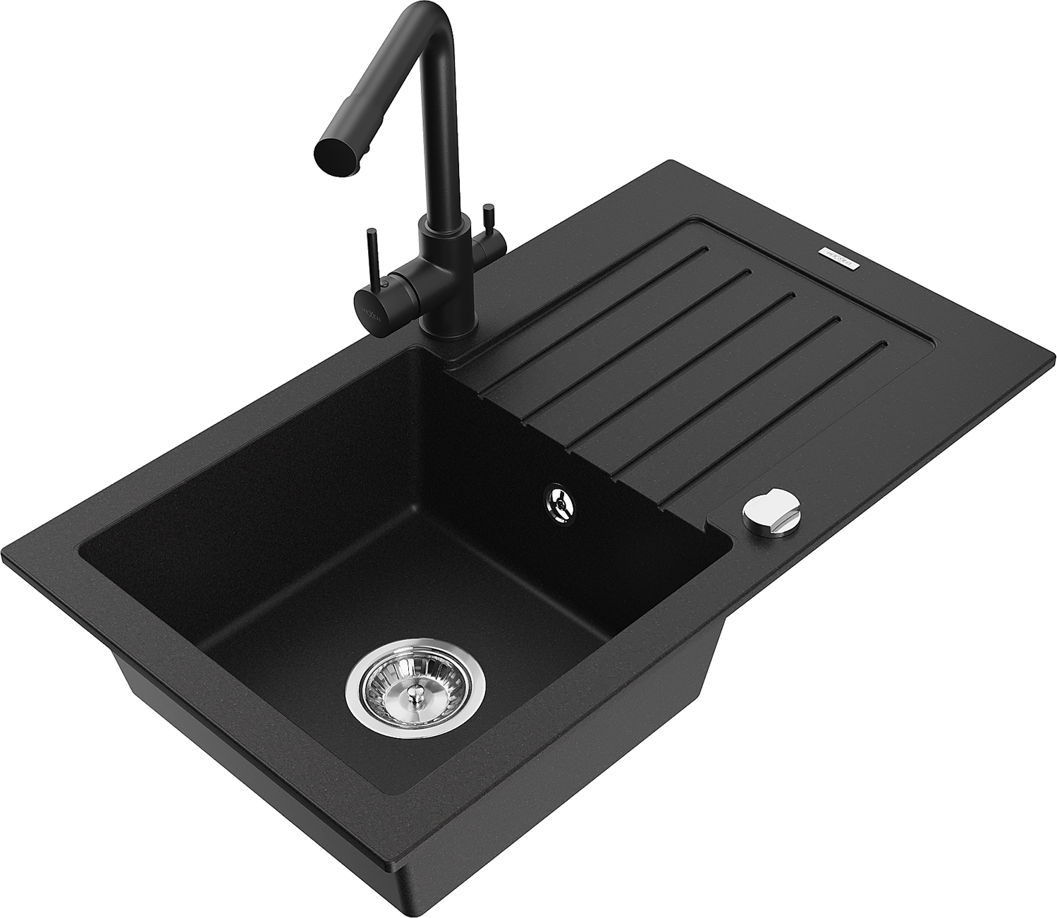 Mexen Pablo egymedencés gránit mosogató csepegtetővel és Duero konyhai csapteleppel, fekete - 6510-77-671600-70