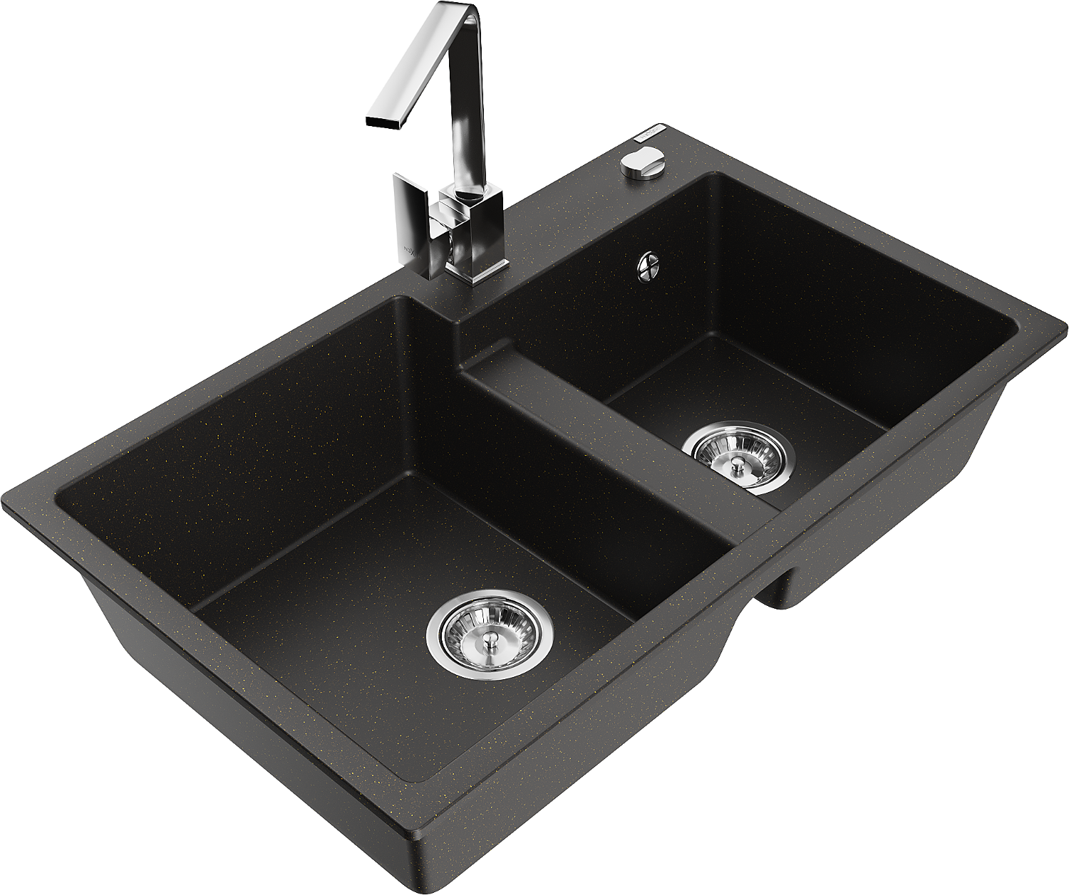 Mexen Tomas gránit kétmedencés mosogató Rita konyhai csappal, fekete/arany metál - 6516-75-670300-00