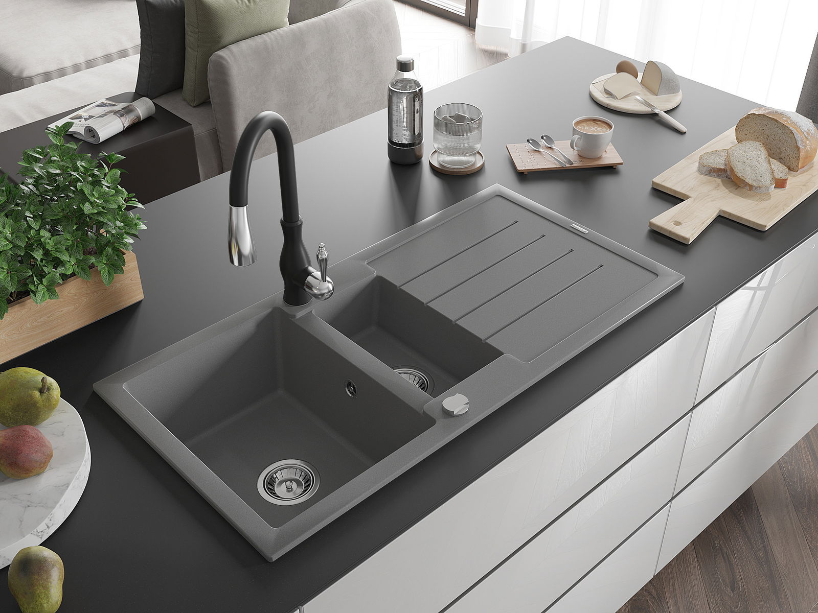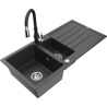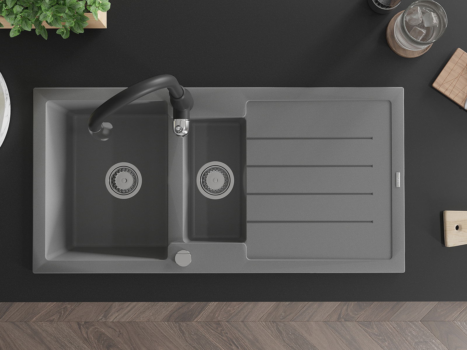 Mexen Andres gránit mosogató 1,5 rekeszes csepegtetővel és konyhai csapteleppel Savita, szürke - 6515-71-672601-70
