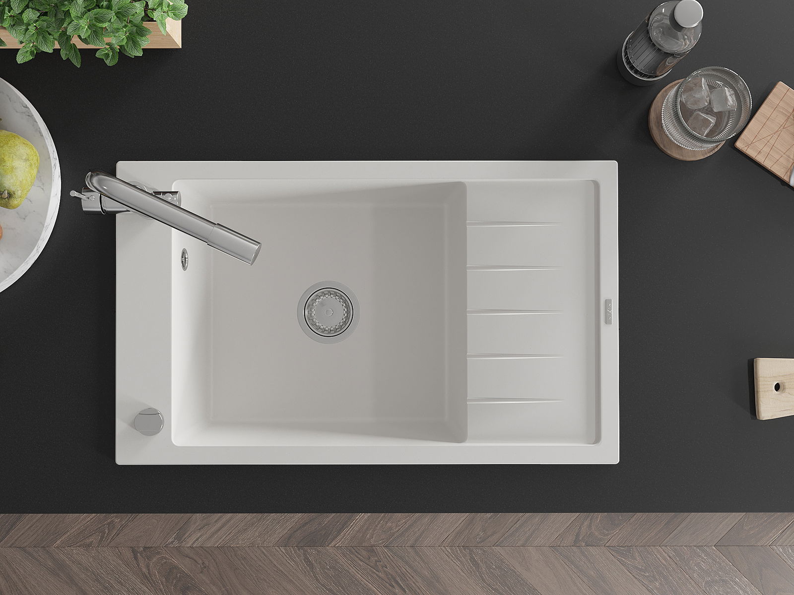 Mexen Elias 1 rekeszes gránit mosogató csepegtetővel és Duero konyhai csapteleppel, fehér - 6511-20-671600-00