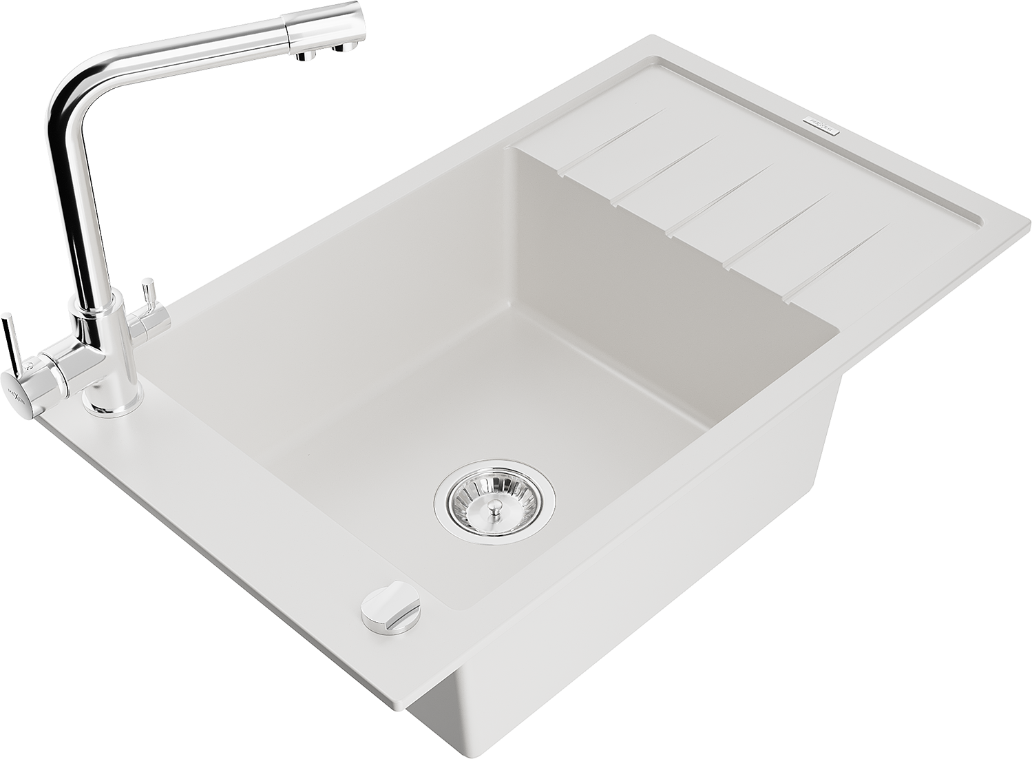 A mosogató felülete ellenáll a foltoknak és a elszíneződésnek, amelynek köszönhetően könnyű megtisztítani és hosszú ideig megtartja színét. Esztétikai és gyakorlatilag kiegészítve minden konyhát.