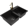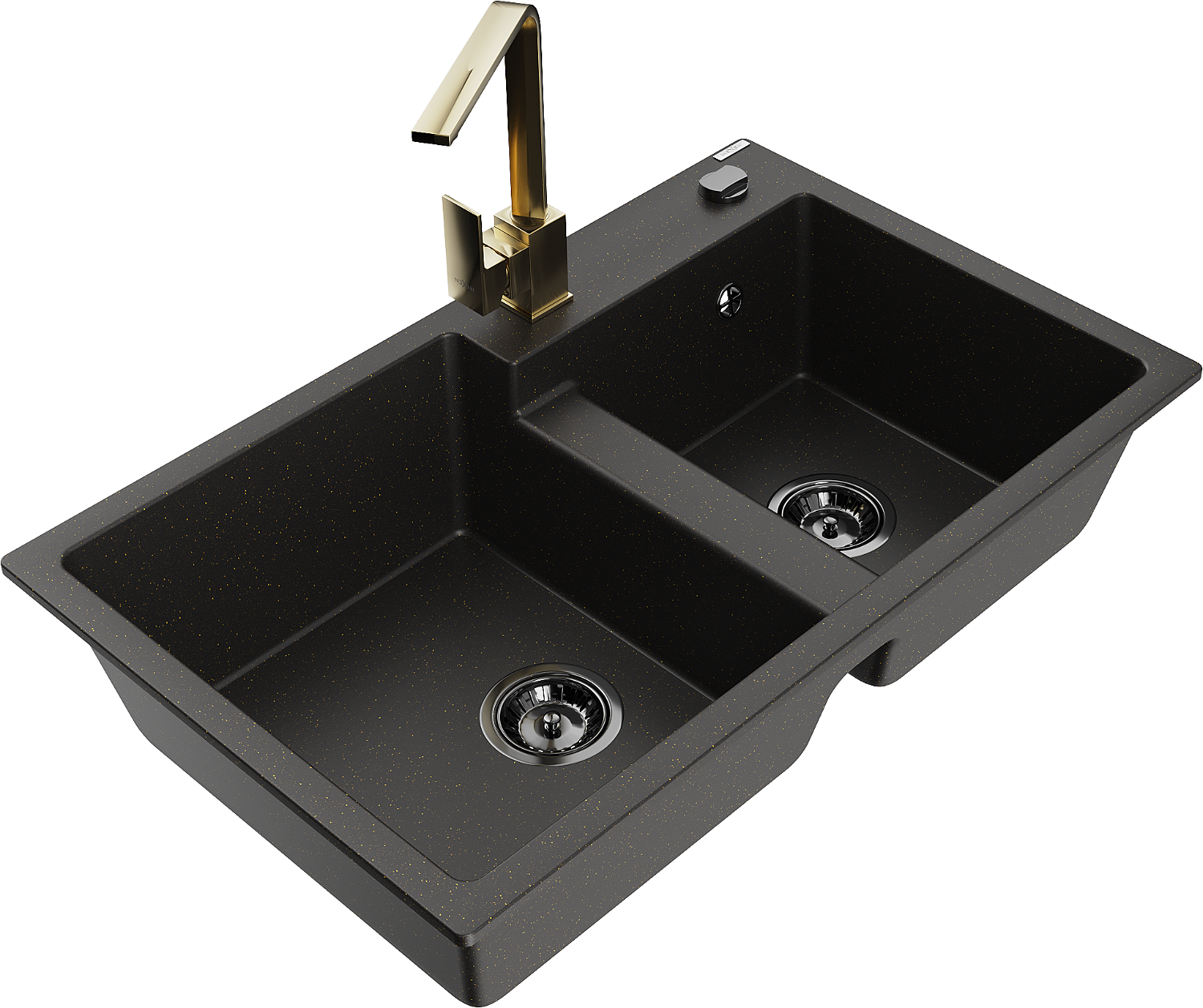 Mexen Tomas 2 rekeszes gránit mosogató konyhai csappal Rita, fekete/arany metál - 6516-75-670300-50-B