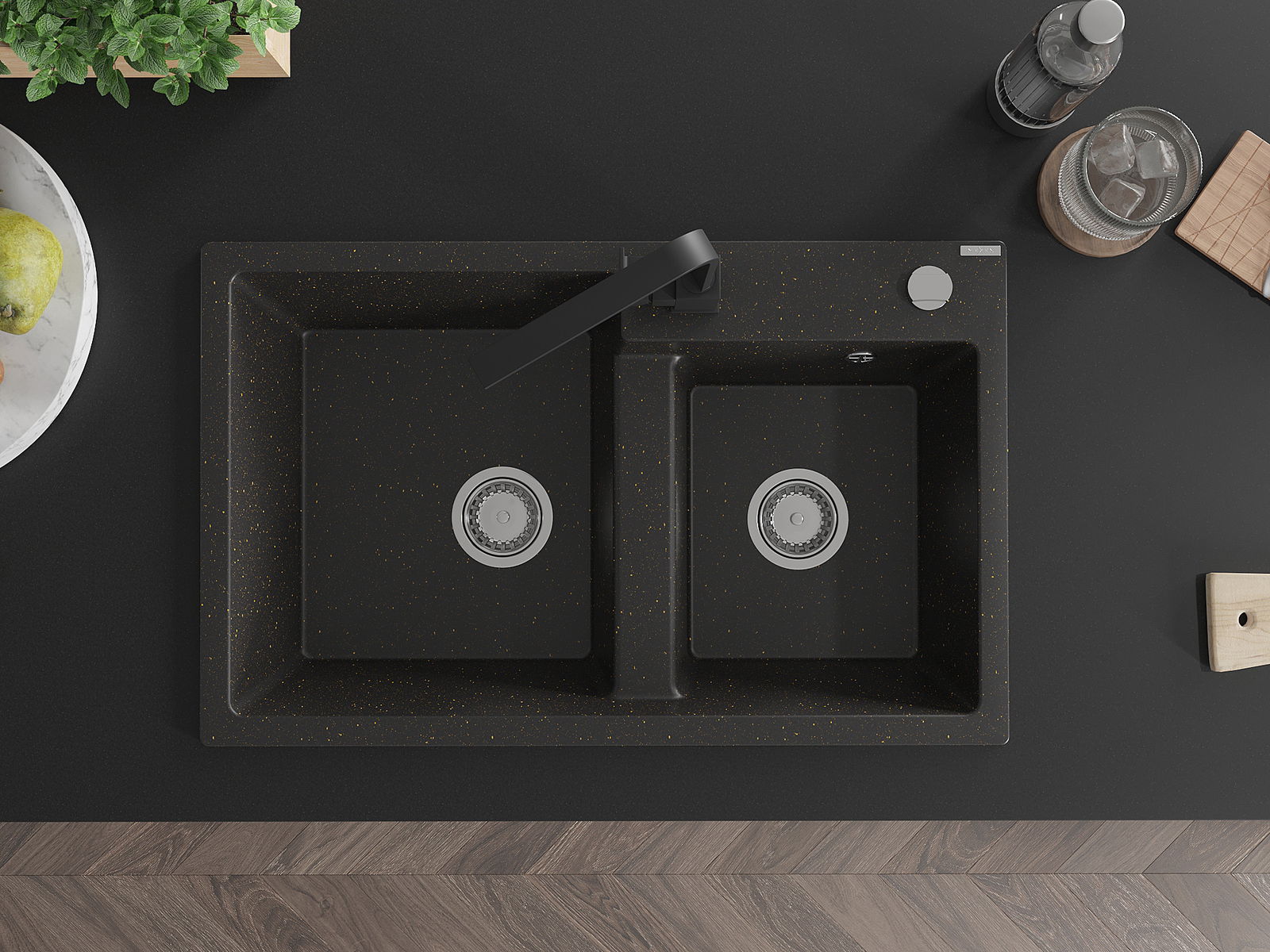 A mosogató magas minőségű gránitból készült. Elegáns, de mindenekelőtt praktikus kiegészítője minden konyhának, függetlenül annak stílusától. A gránit magas minősége és tartóssága hosszú távú használatot biztosít.