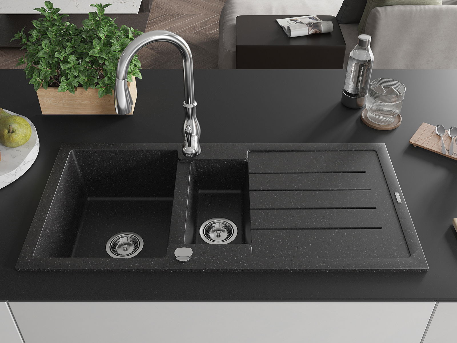 A mosogató kiváló minőségű gránitból készül. Ez egy elegáns és mindenekelőtt minden konyhához praktikus kiegészítés, stílusától függetlenül. A kiváló minőségű és a gránit tartósság biztosítja a sok éves használatát.