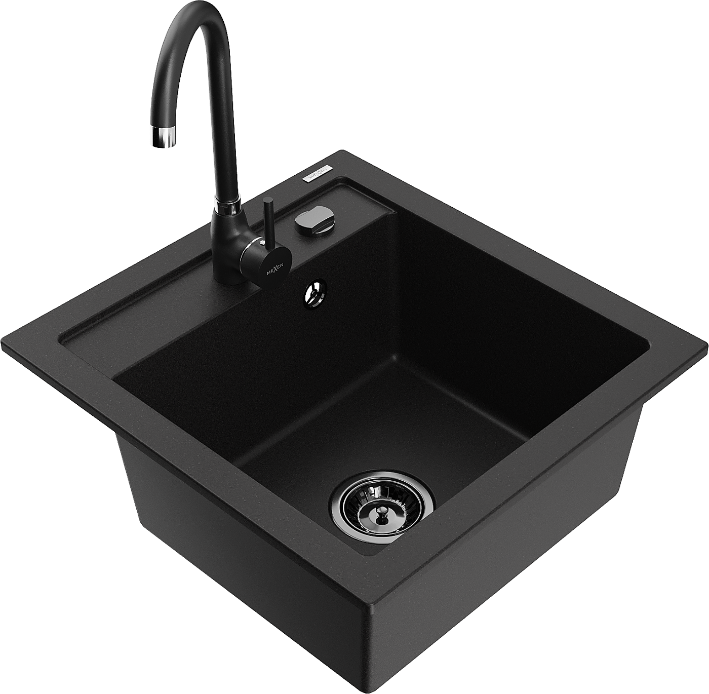 Mexen Vito 1 rekeszes gránit mosogató Telma konyhai csappal, fekete - 6503-77-670200-70-B