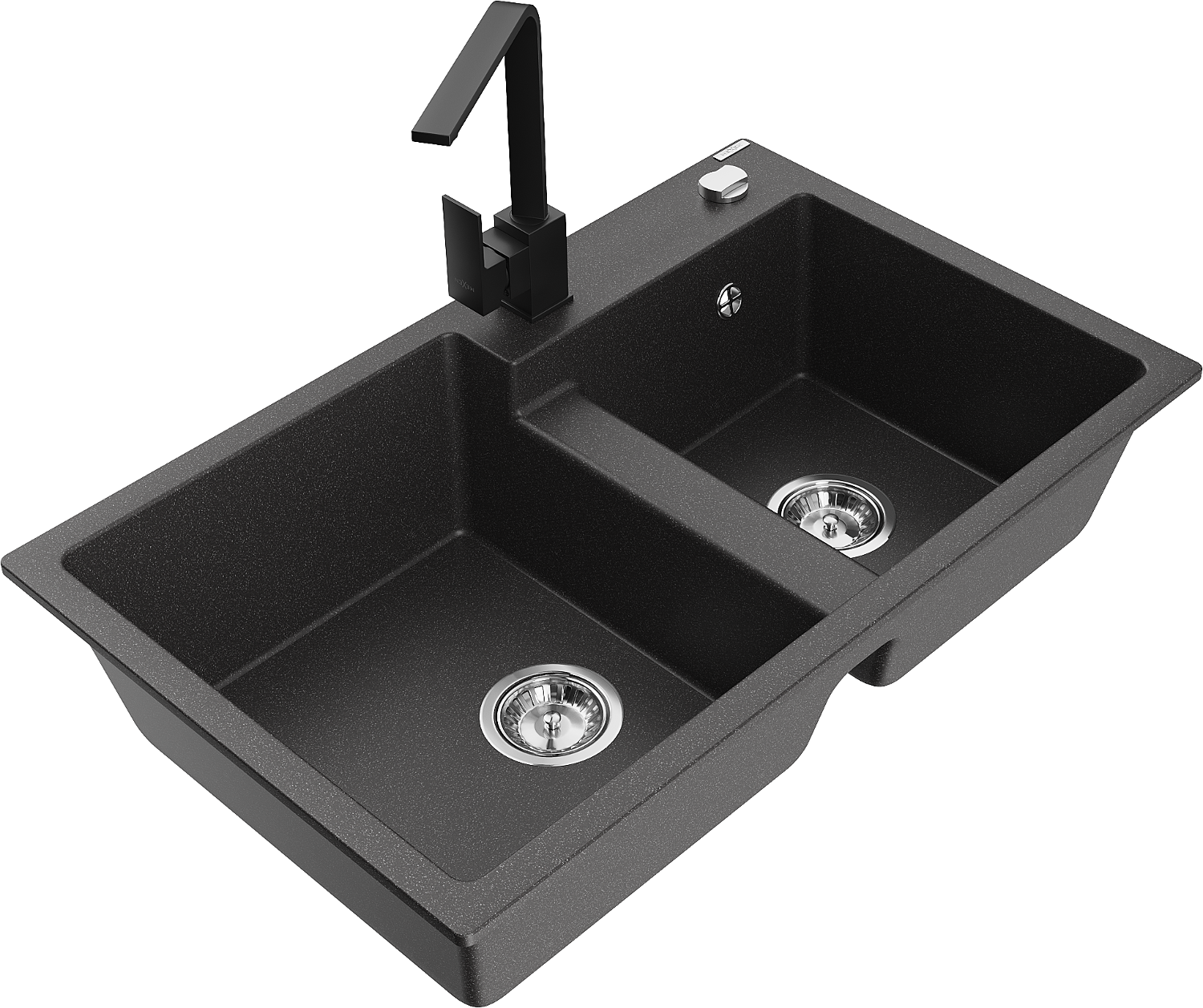 Mexen Tomas gránit mosogató 2 rekeszes konyhai csappal Rita, fekete pettyes - 6516-76-670300-70