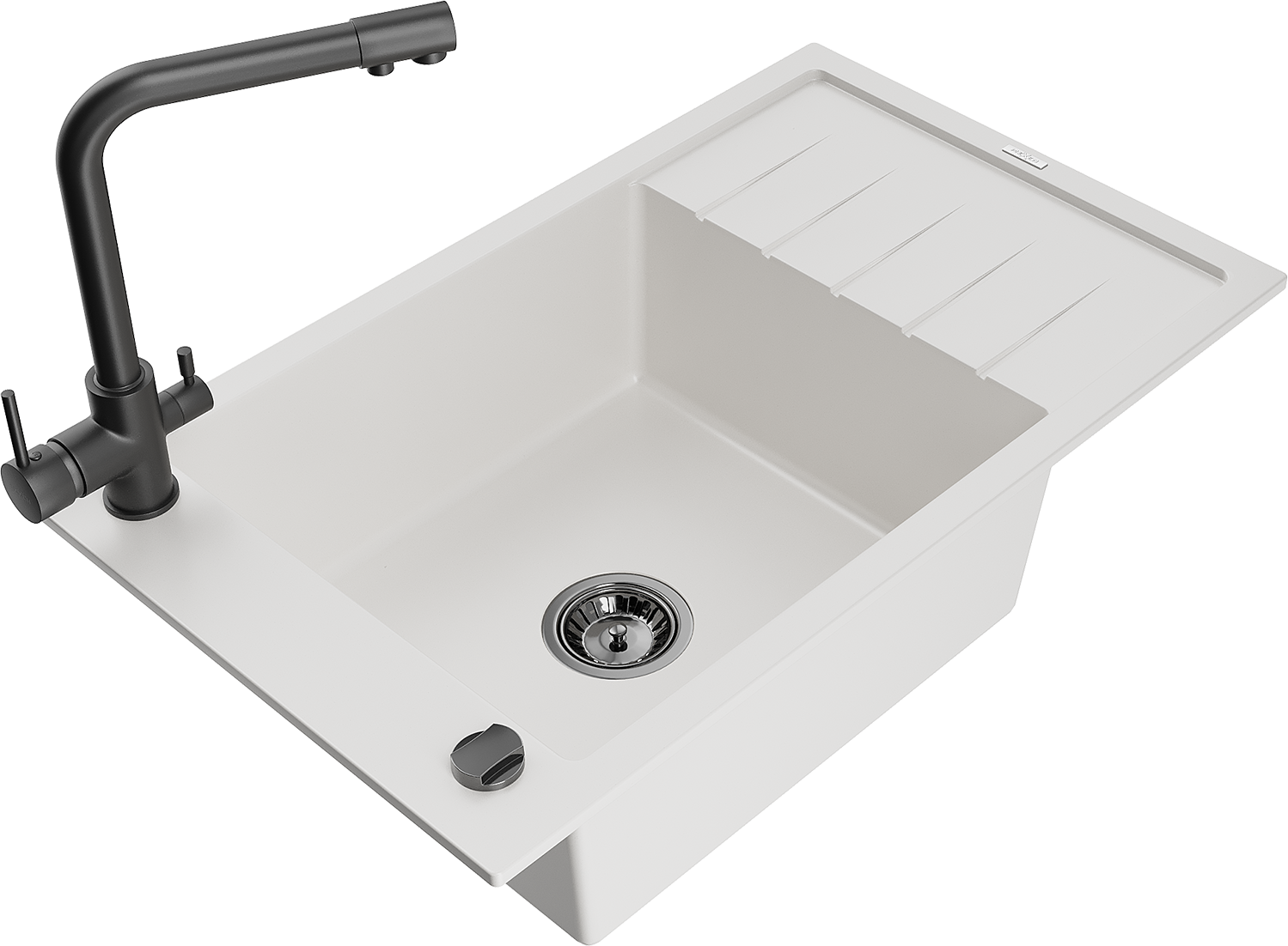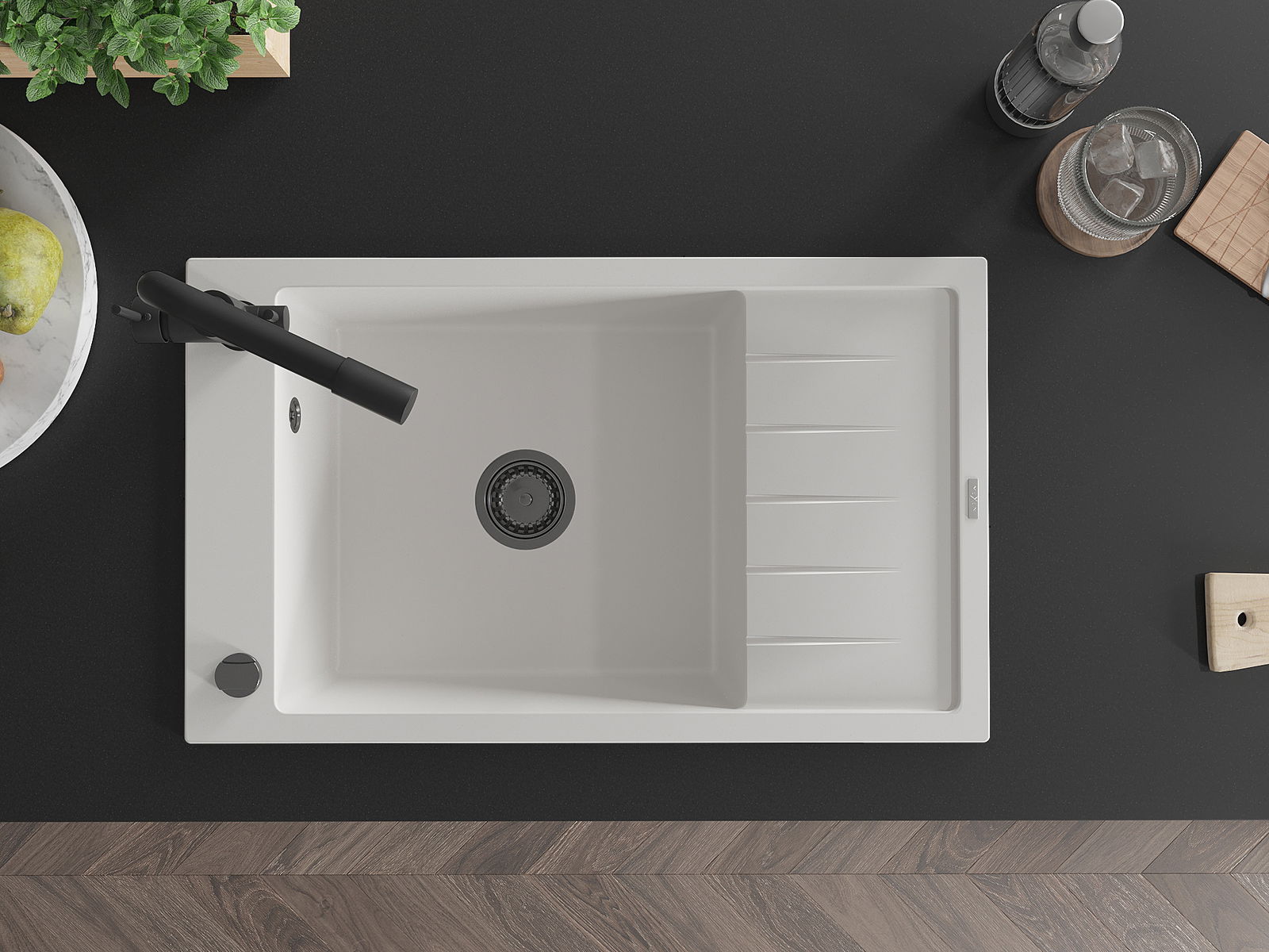 Mexen Elias egymedencés gránit mosogató csepegtetővel és Duero konyhai csapteleppel, fehér - 6511-20-671600-70