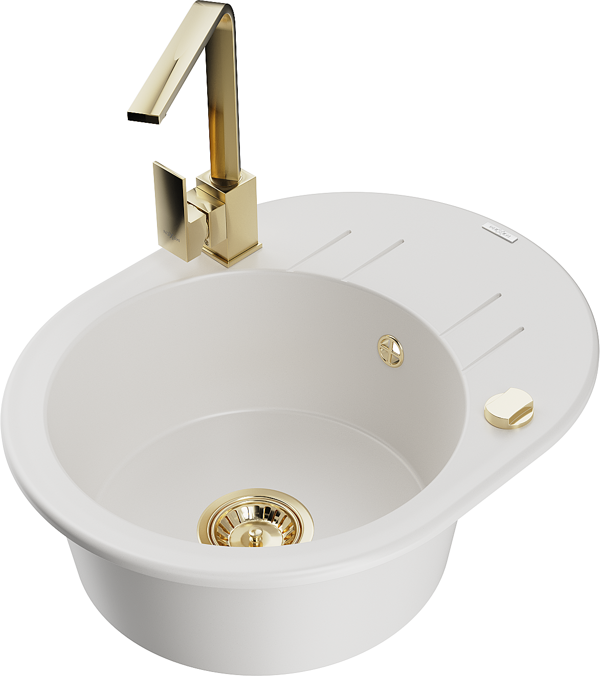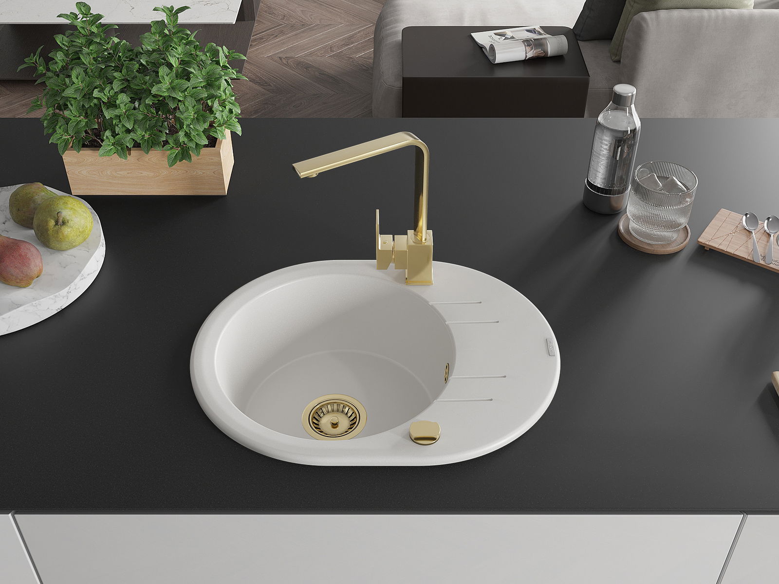 Mexen Kevin gránit mosogató, 1-medencés csepegtetővel és Rita konyhai csappal, fehér - 6517-20-670300-50
