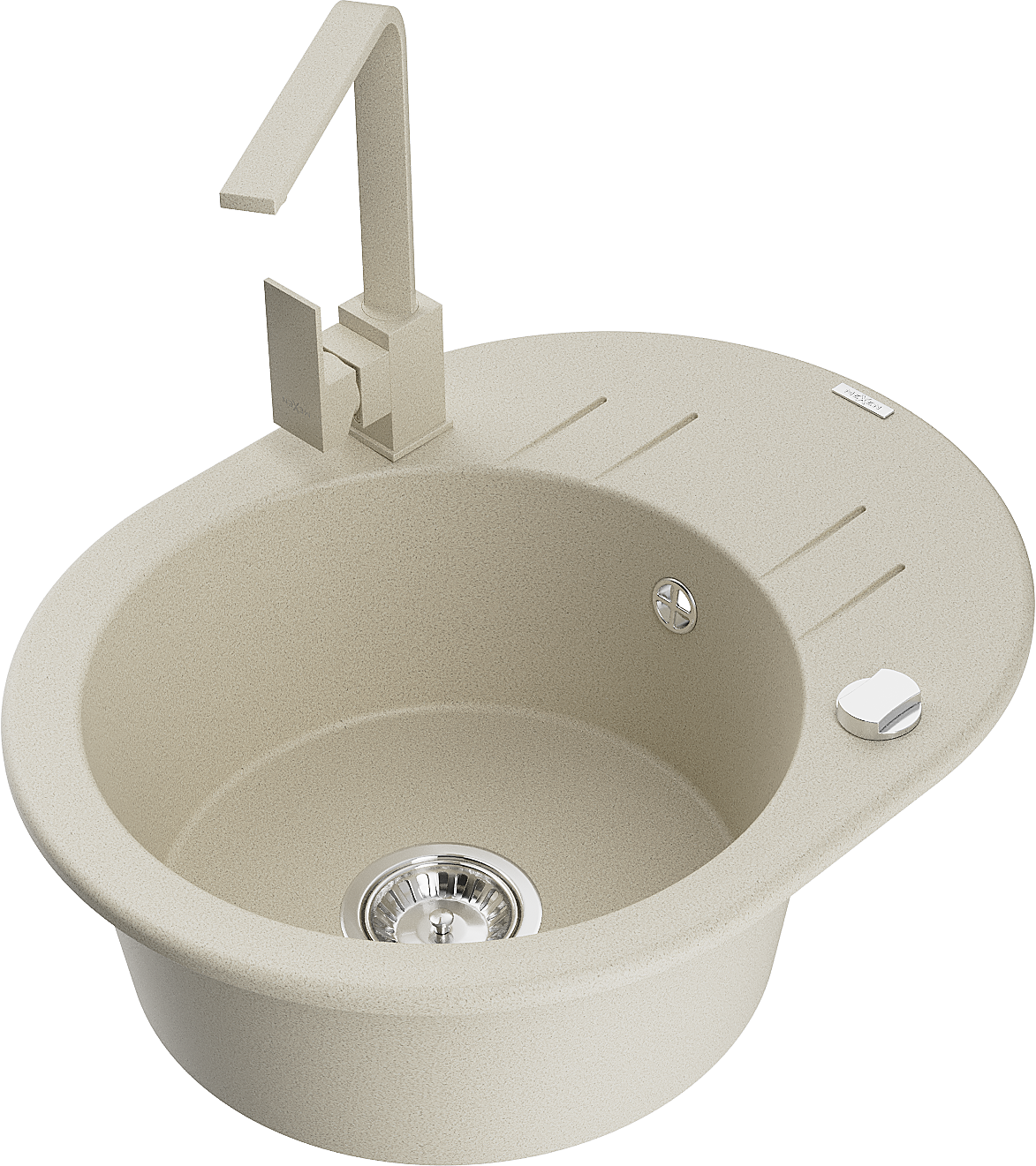 Mexen Kevin egykamrás gránit mosogatótálca csepegtetővel és Rita konyhai csapteleppel, bézs - 6517-69-670300-69