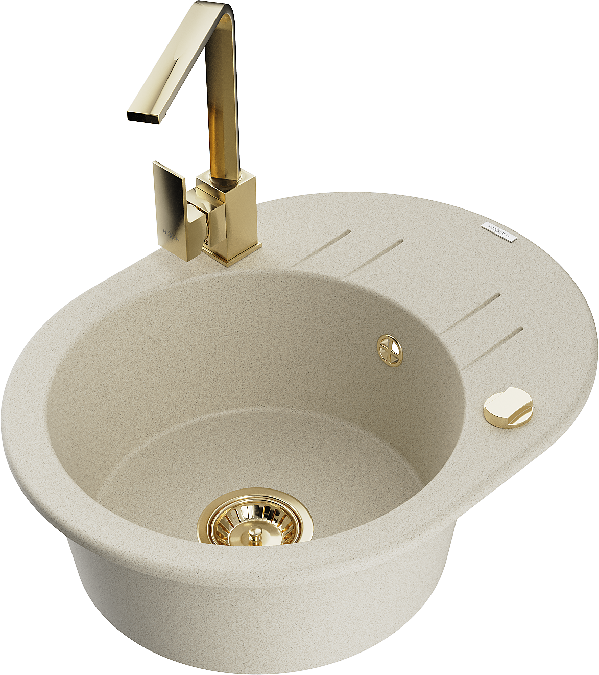 Mexen Kevin egymedencés gránit mosogató csepegtetővel és Rita konyhai csapteleppel, bézs - 6517-69-670300-50