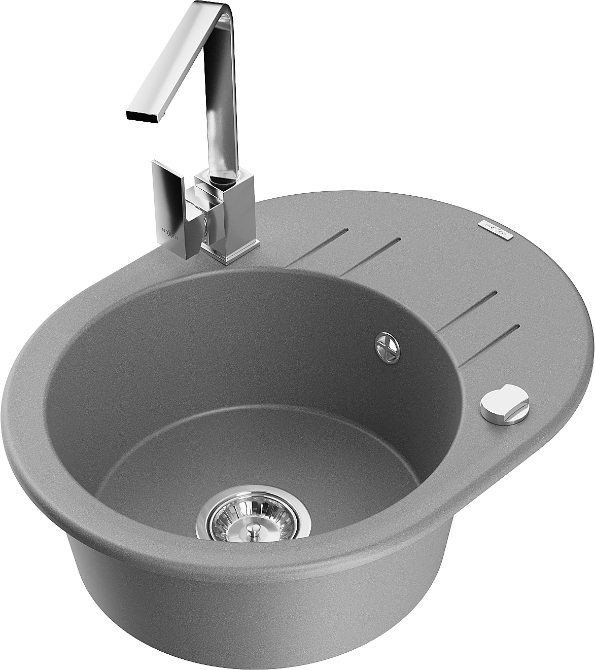 Mexen Kevin 1 rekeszes gránit mosogató csepegtetővel és Rita konyhai csapteleppel, szürke - 6517-71-670300-00