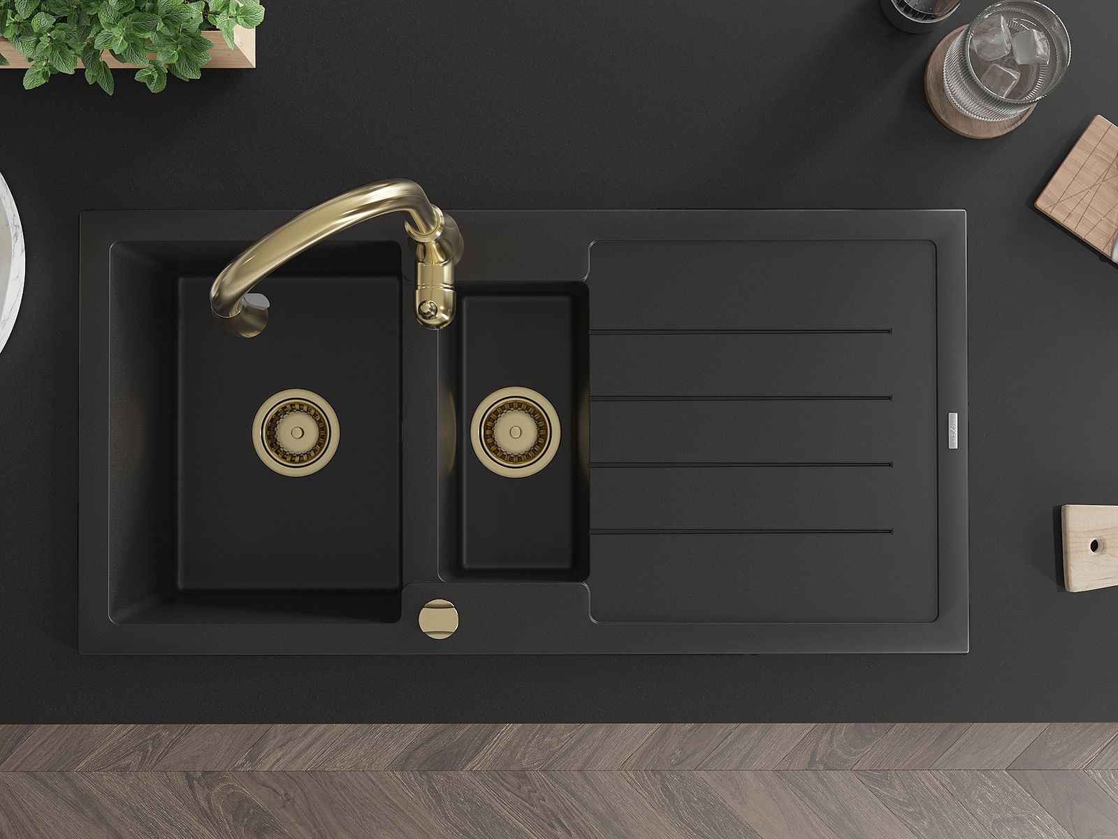 A mosogató magas minőségű gránitból készült. Elegáns, de mindenekelőtt praktikus kiegészítője minden konyhának, függetlenül annak stílusától. A gránit magas minősége és tartóssága hosszú távú használatot biztosít.
