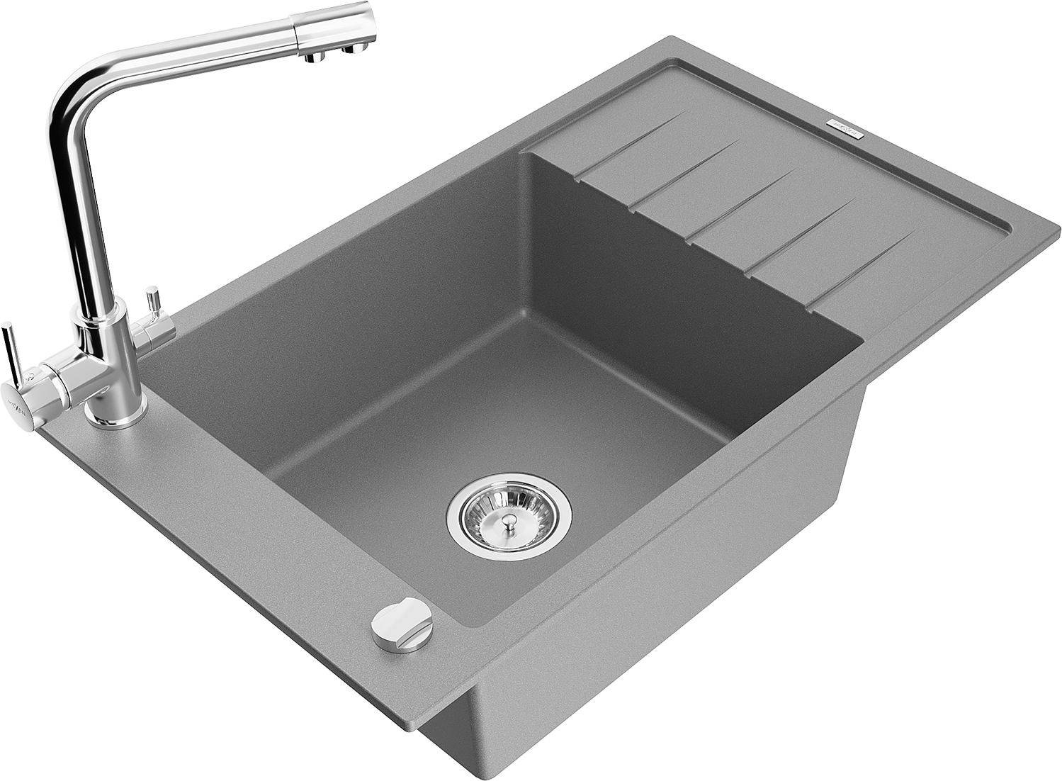 Mexen Elias egymedencés gránit mosogató csepegtetővel és Duero konyhai csapteleppel, szürke - 6511-71-671600-00