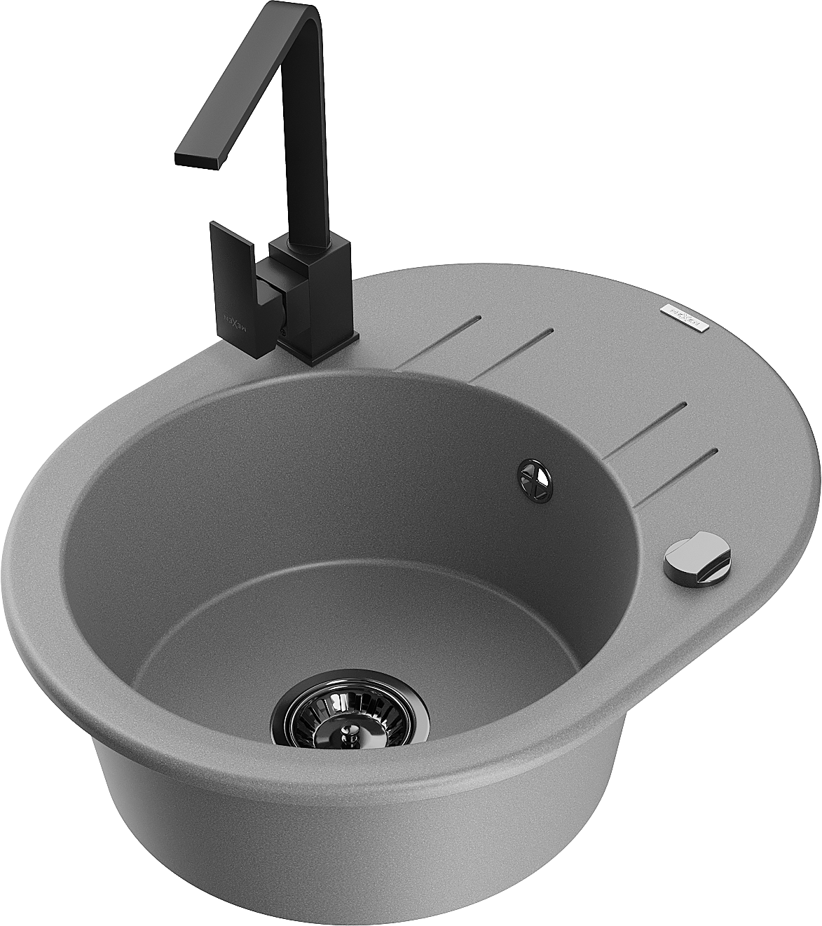 Mexen Kevin egymedencés gránit mosogató csepegtetővel és Rita konyhai csapteleppel, szürke - 6517-71-670300-70-B