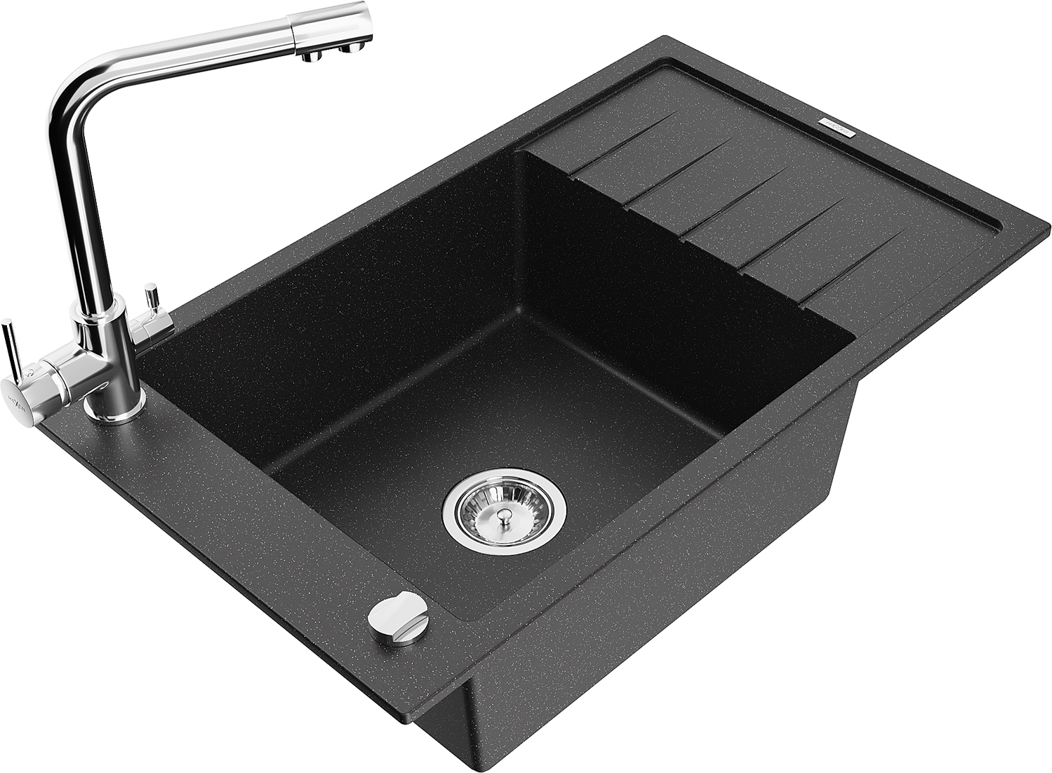 A mosogató kiváló minőségű gránitból készül. Ez egy elegáns és mindenekelőtt minden konyhához praktikus kiegészítés, stílusától függetlenül. A kiváló minőségű és a gránit tartósság biztosítja a sok éves használatát.