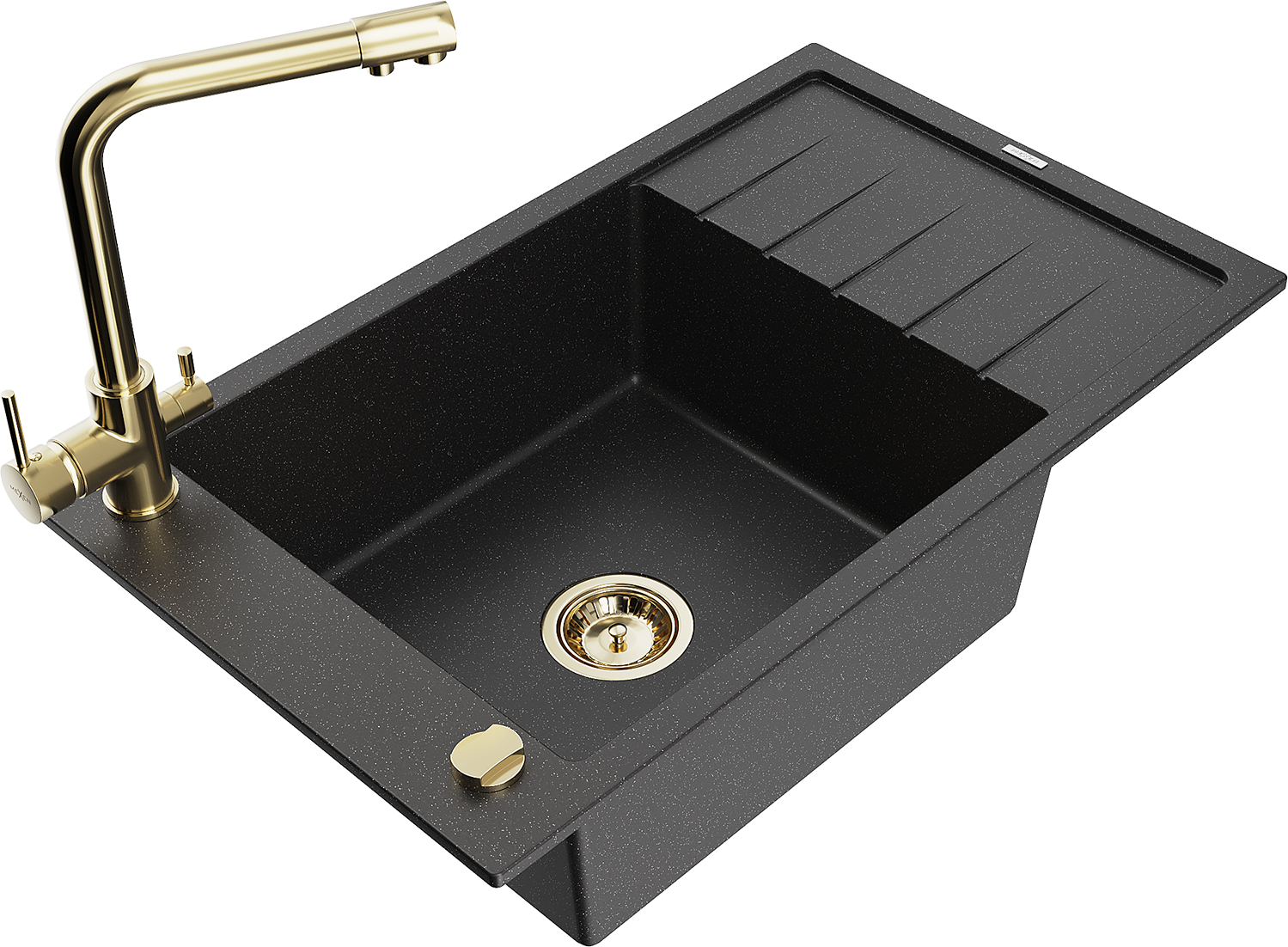Mexen Elias egymedencés gránit mosogató csepegtetővel és Duero konyhai csappal, fekete/ezüst metál - 6511-73-671600-50