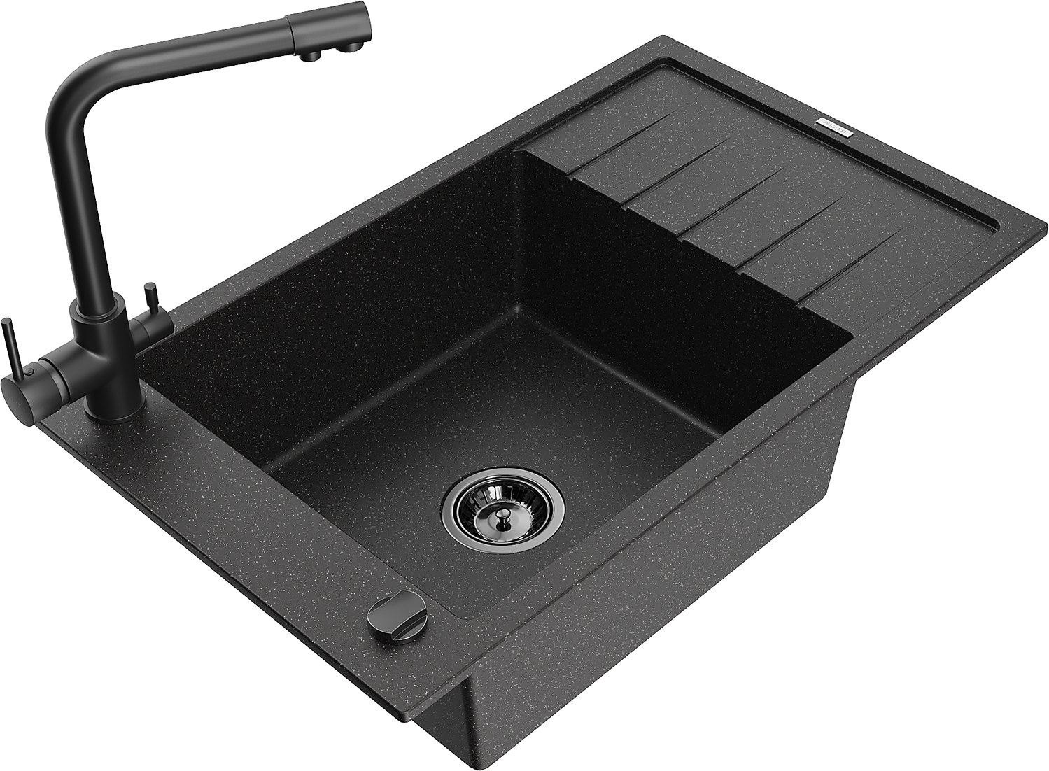 Mexen Elias egymedencés gránit mosogató csepegtetővel és Duero konyhai csapteleppel, fekete/ezüst metál - 6511-73-671600-70-B