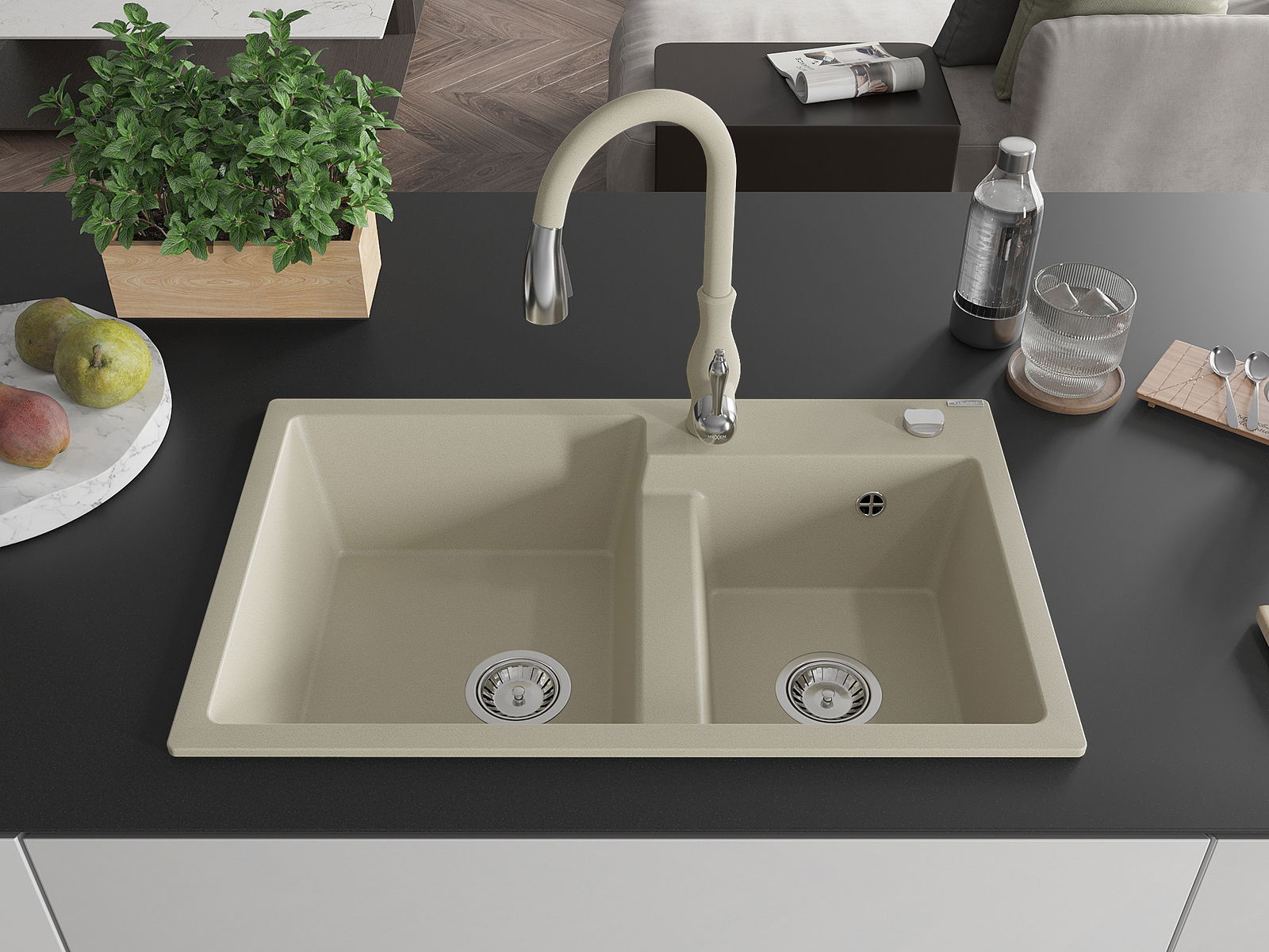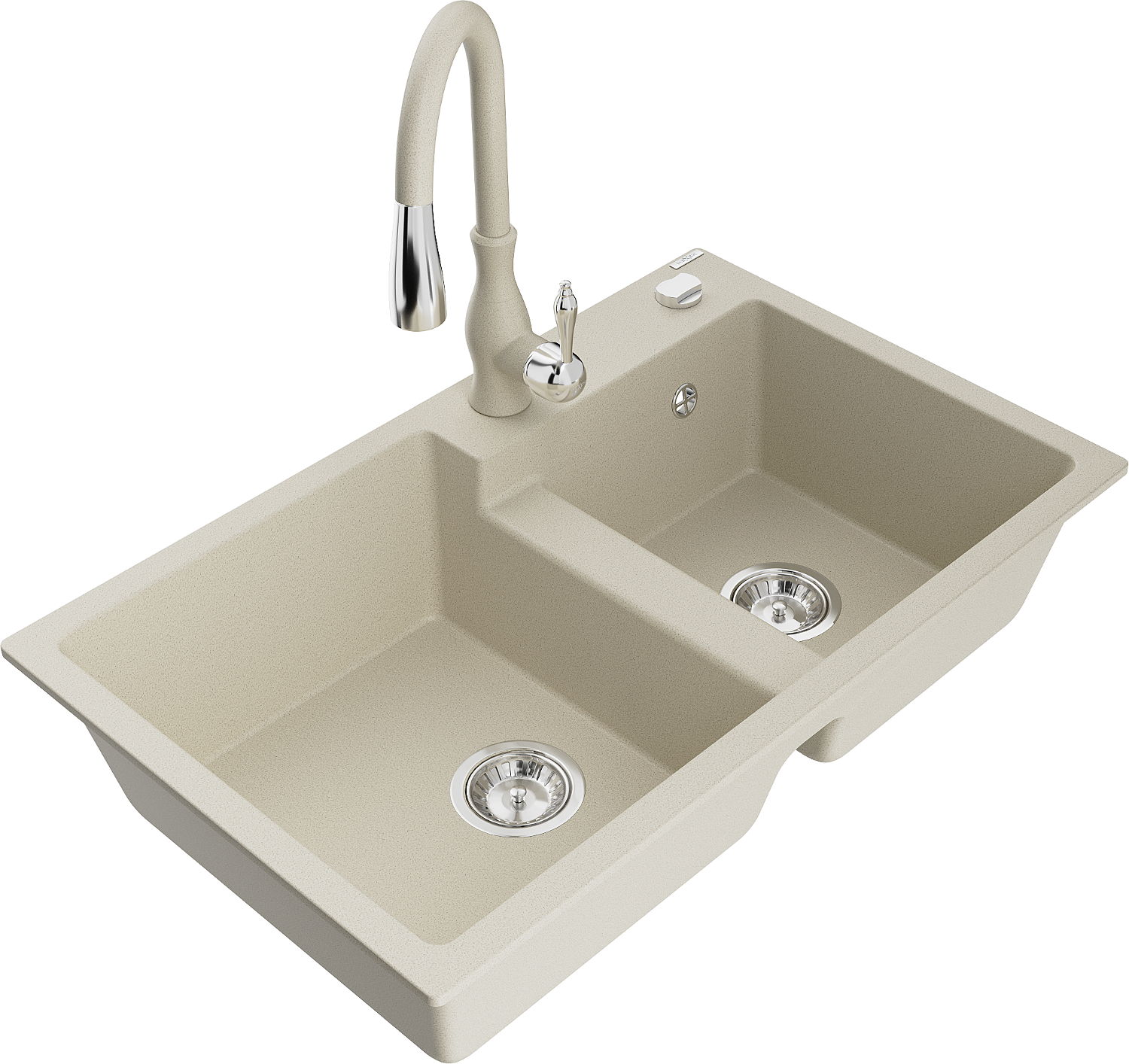 Mexen Tomas gránit 2-medencés mosogató Savita konyhai csapteleppel, bézs - 6516-69-672601-69
