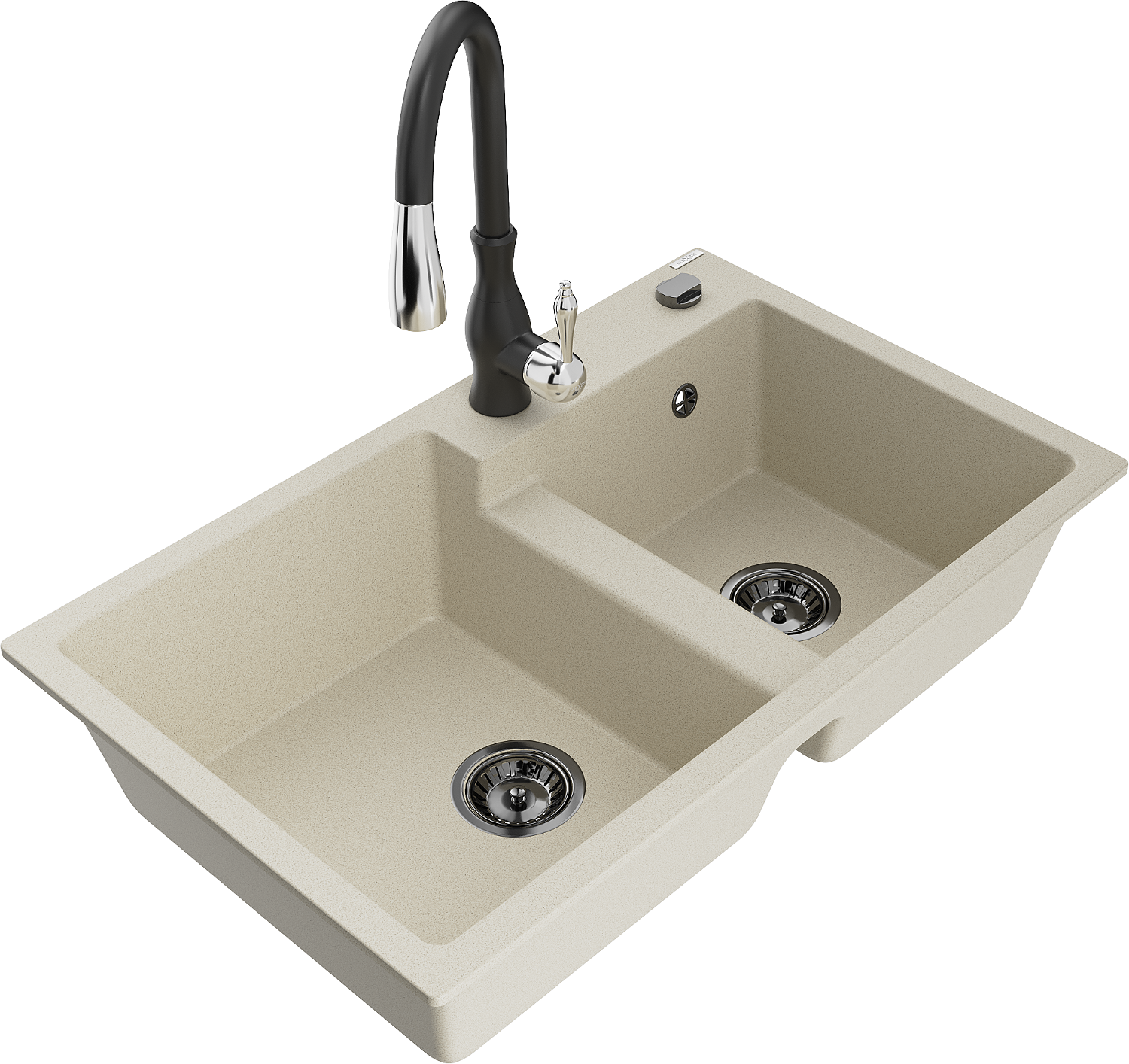 Mexen Tomas gránit kéttálcás mosogató Savita konyhai csapteleppel, bézs - 6516-69-672601-70