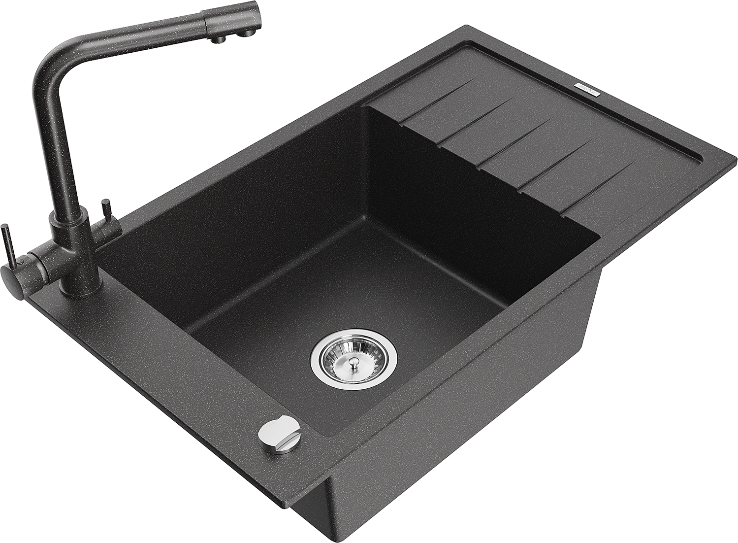 A mosogató magas minőségű gránitból készült. Elegáns, de mindenekelőtt praktikus kiegészítője minden konyhának, függetlenül annak stílusától. A gránit magas minősége és tartóssága hosszú távú használatot biztosít.