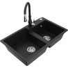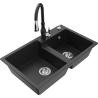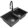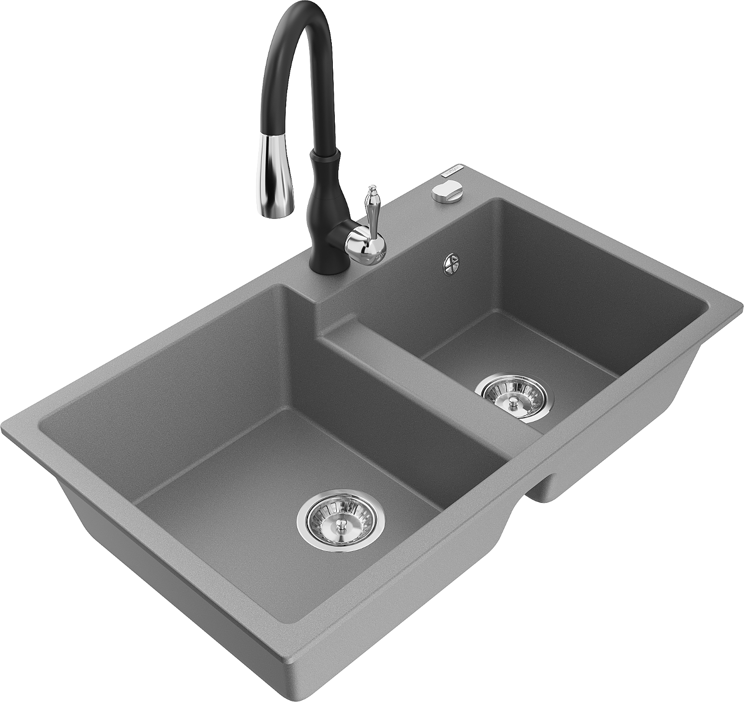 Mexen Tomas gránit mosogató 2 medencés konyhai csapteleppel Savita, szürke - 6516-71-672601-70