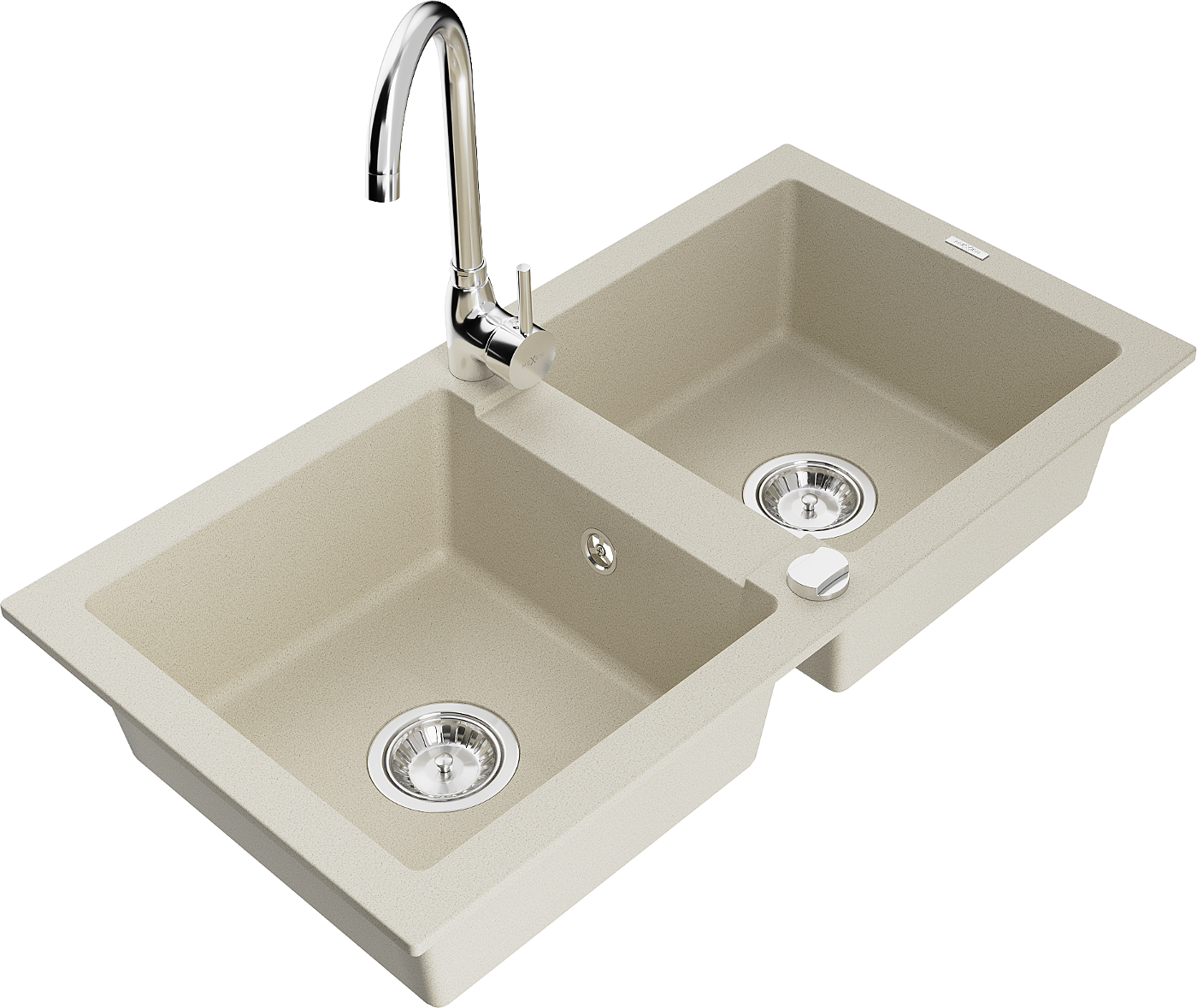 Mexen Mario kétrészes gránit mosogató Telma konyhai csapteleppel, bézs - 6504-69-670200-00