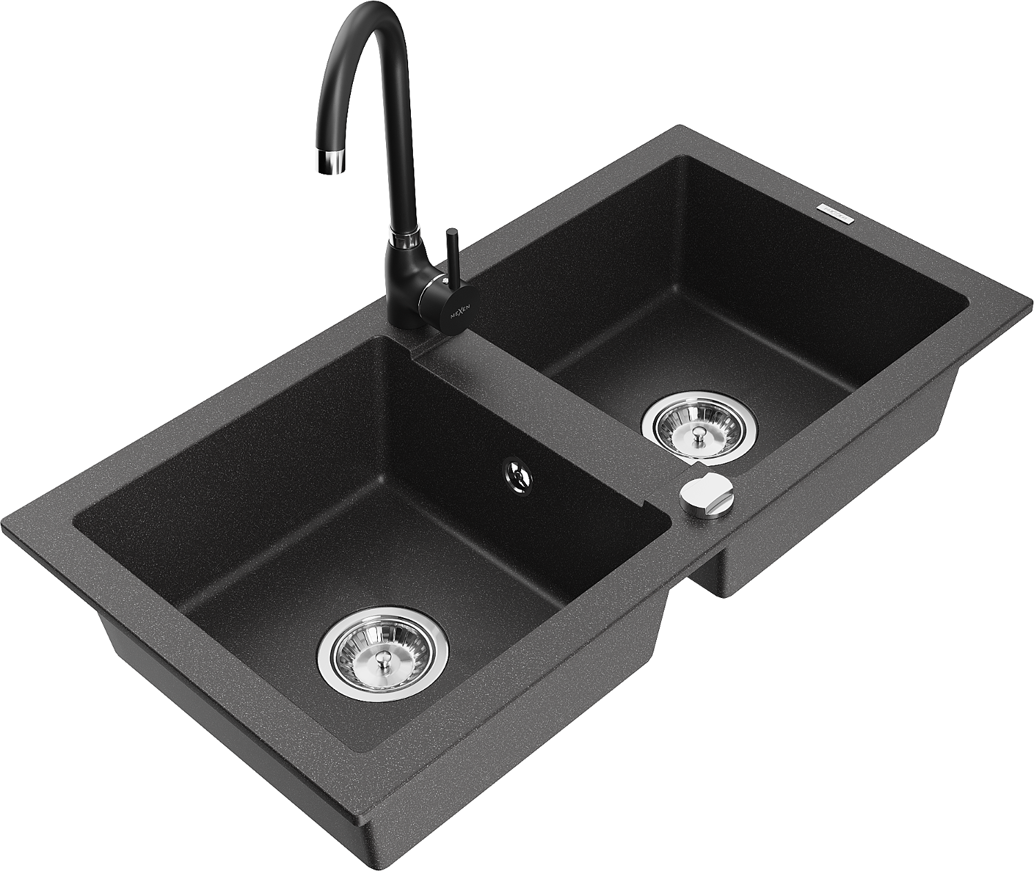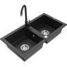 Mexen Mario gránit konyhai mosogató 2-medencés konyhai csappal Telma, fekete pettyes - 6504-76-670200-70