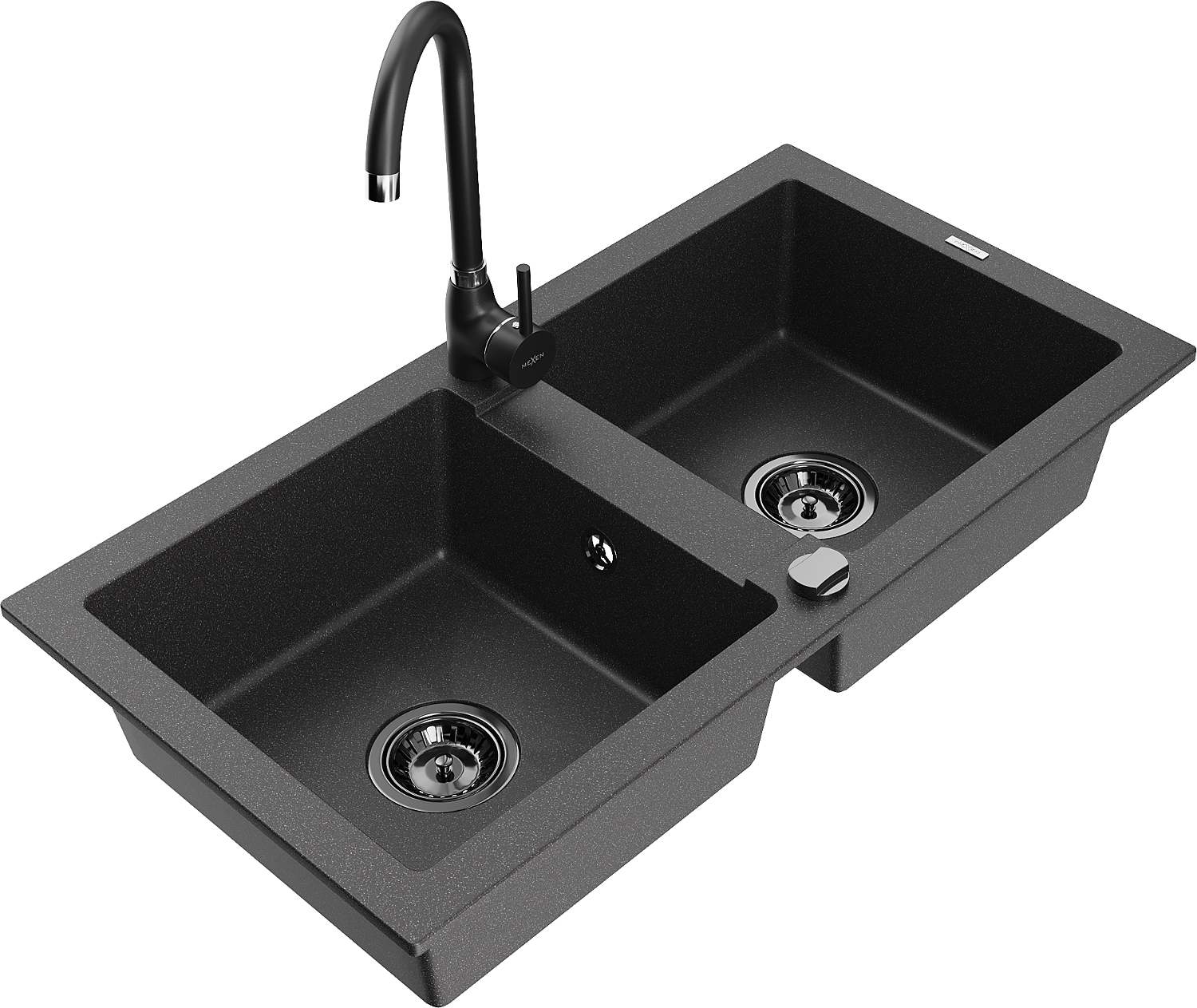 Mexen Mario 2 kamrás gránit mosogató Telma konyhai csappal, fekete pettyes - 6504-76-670200-70-B