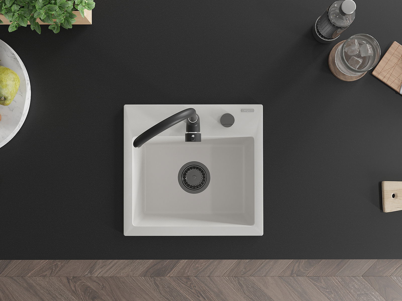 A mosogató magas minőségű gránitból készült. Elegáns, de mindenekelőtt praktikus kiegészítője minden konyhának, függetlenül annak stílusától. A gránit magas minősége és tartóssága hosszú távú használatot biztosít.