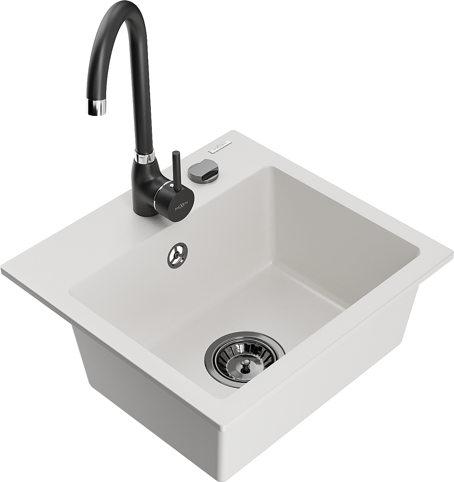 Mexen Milo egymedencés gránit mosogató Telma konyhai csapteleppel, fehér - 6505-20-670200-70