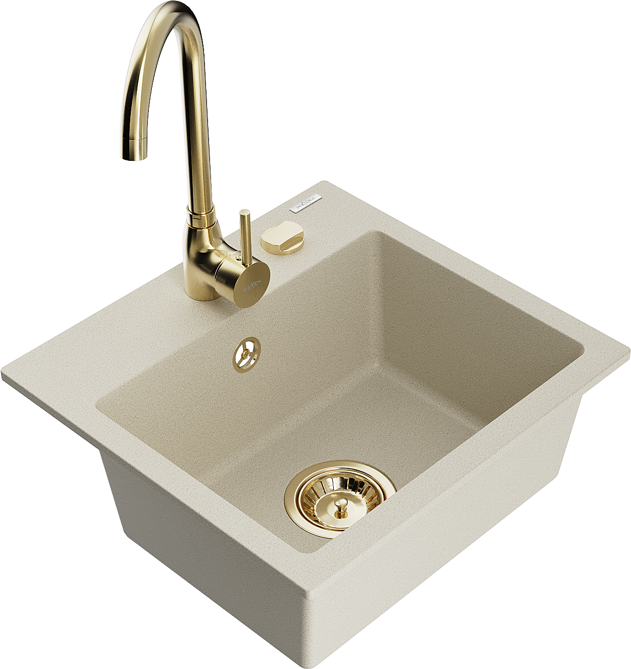 Mexen Milo egymedencés gránit mosogató Telma konyhai csapteleppel, bézs - 6505-69-670200-50
