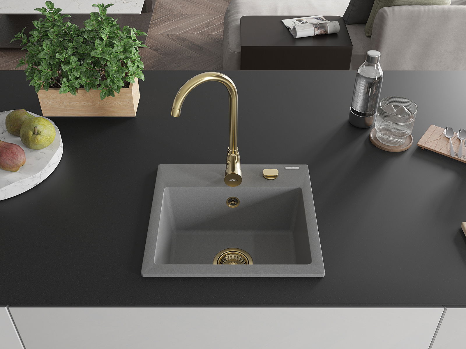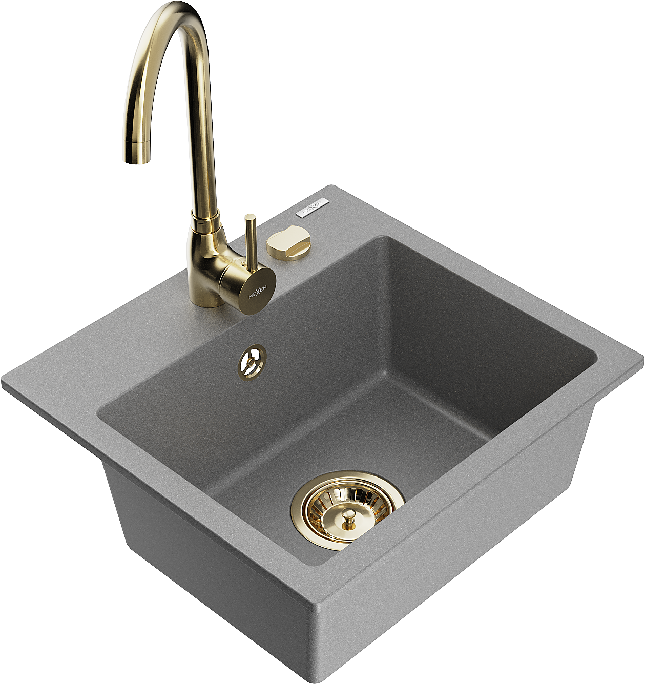 Mexen Milo egymedencés gránit mosogató konyhai csapteleppel Telma, szürke - 6505-71-670200-50