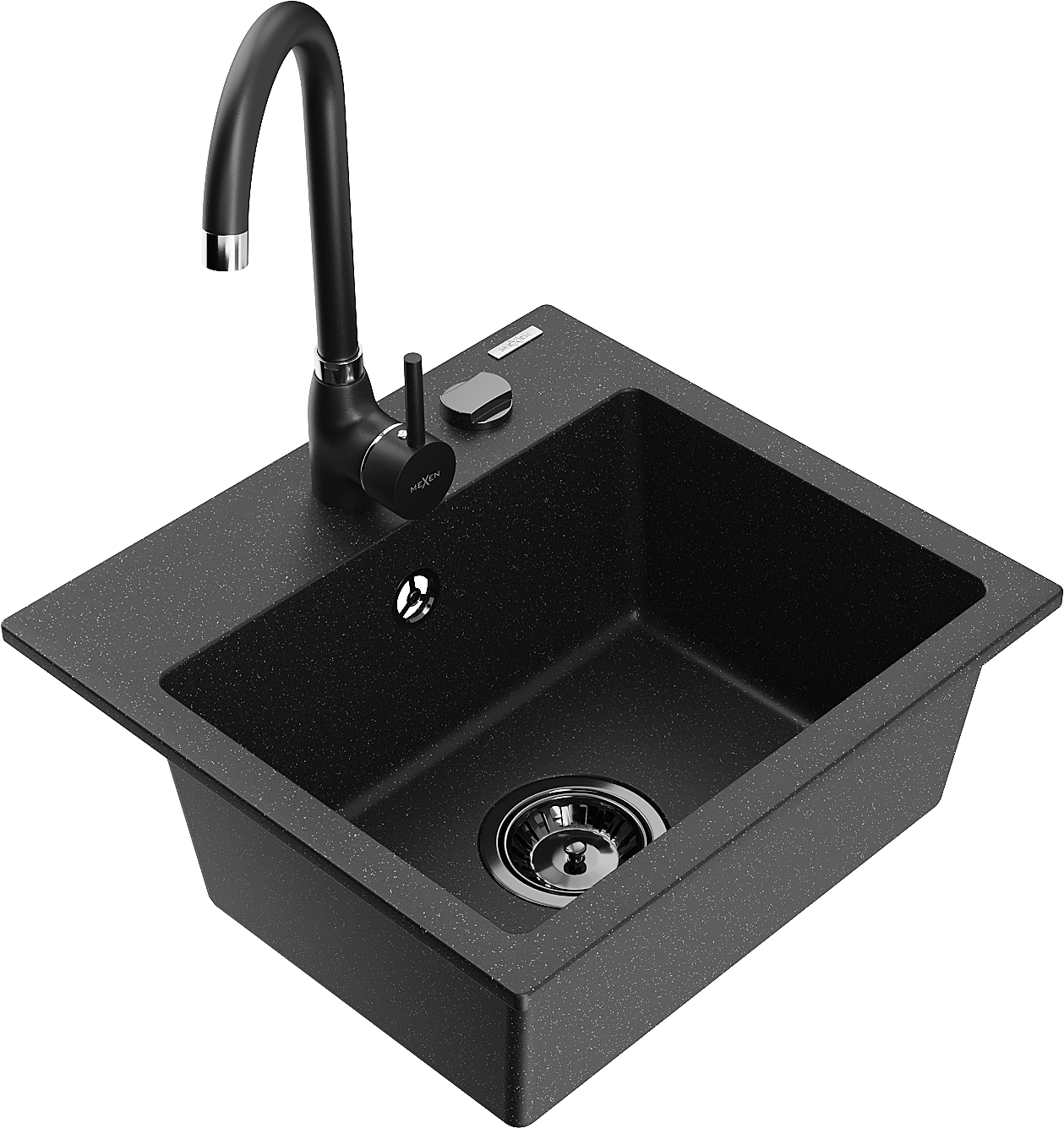 Mexen Milo egymedencés gránit mosogató Telma konyhai csapteleppel, fekete/ezüst - 6505-73-670200-70-B