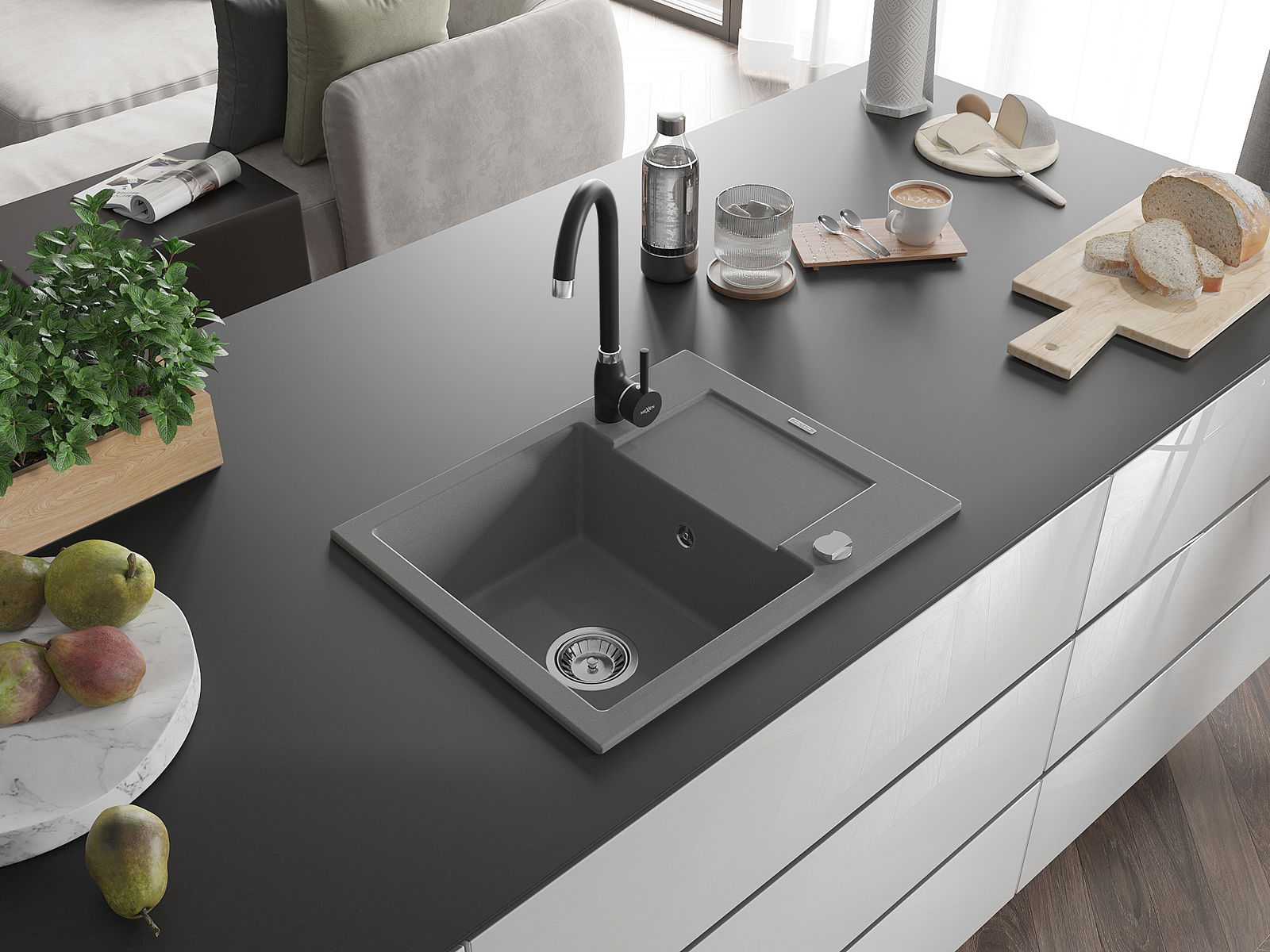A mosogató kiváló minőségű gránitból készül. Ez egy elegáns és mindenekelőtt minden konyhához praktikus kiegészítés, stílusától függetlenül. A kiváló minőségű és a gránit tartósság biztosítja a sok éves használatát.