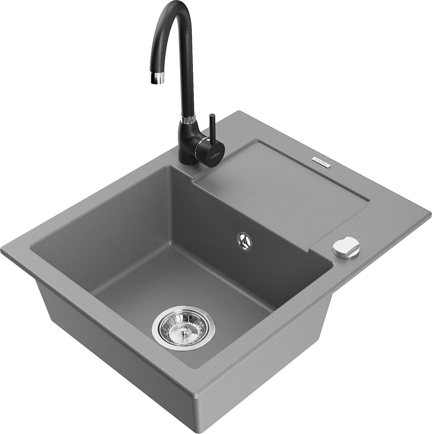 Mexen Enzo 1 rekeszes gránit mosogató csepegtetővel és Telma konyhai csappal, szürke - 6506-71-670200-70