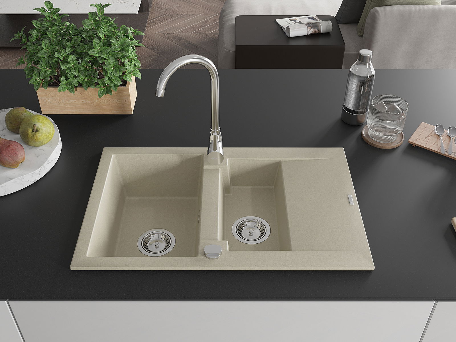 A mosogató felülete ellenáll a foltoknak és a elszíneződésnek, amelynek köszönhetően könnyű megtisztítani és hosszú ideig megtartja színét. Esztétikai és gyakorlatilag kiegészítve minden konyhát.
